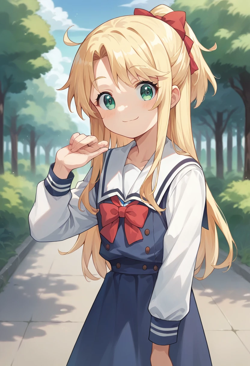 score_9, score_8_up, score_7_up, source_anime, masterpiece, 1girl, ctianhimesaka, sailor dress, neck bow, white shirt, sailor collar, long sleeves, looking at viewer,Negative prompt:
