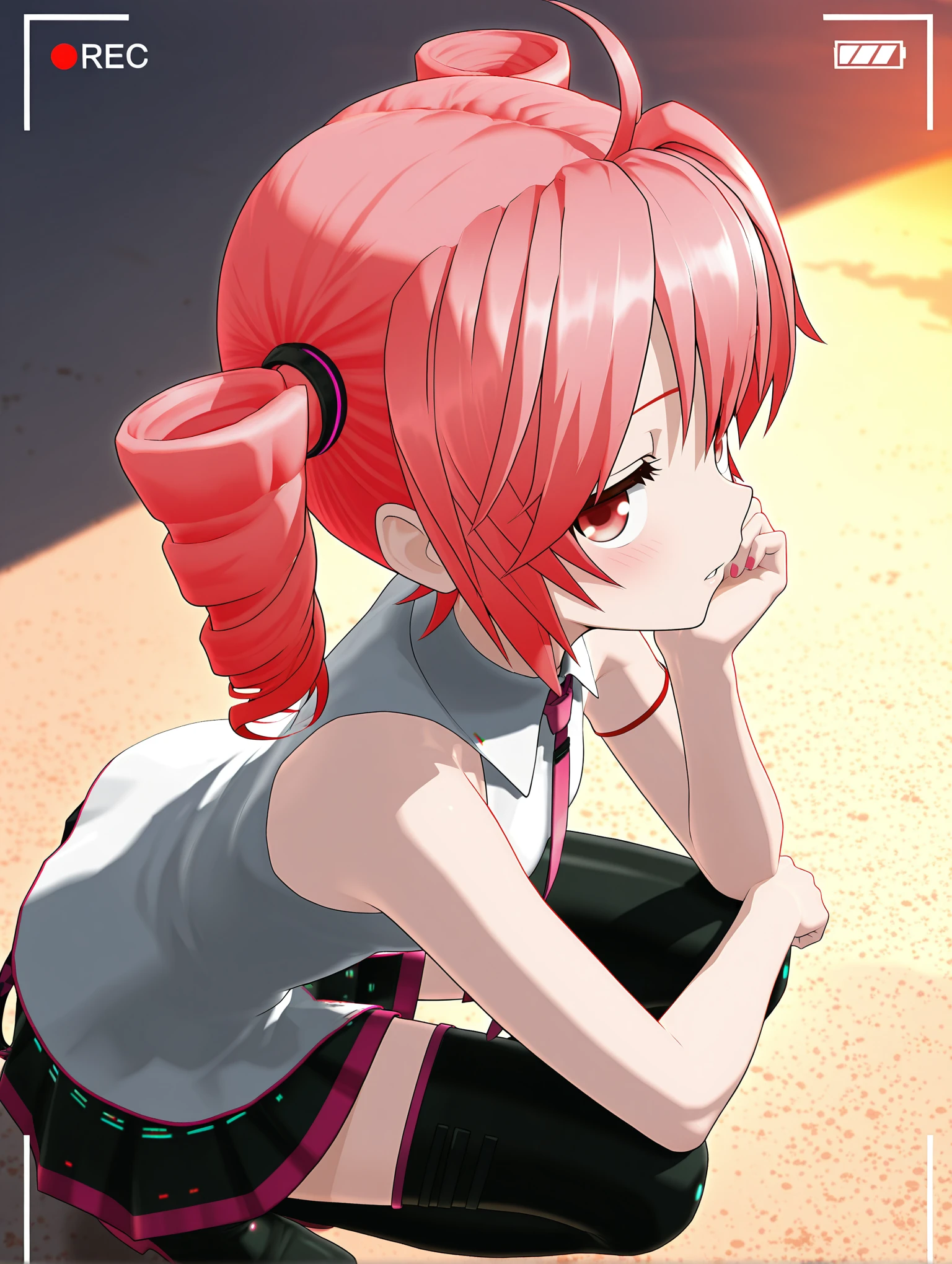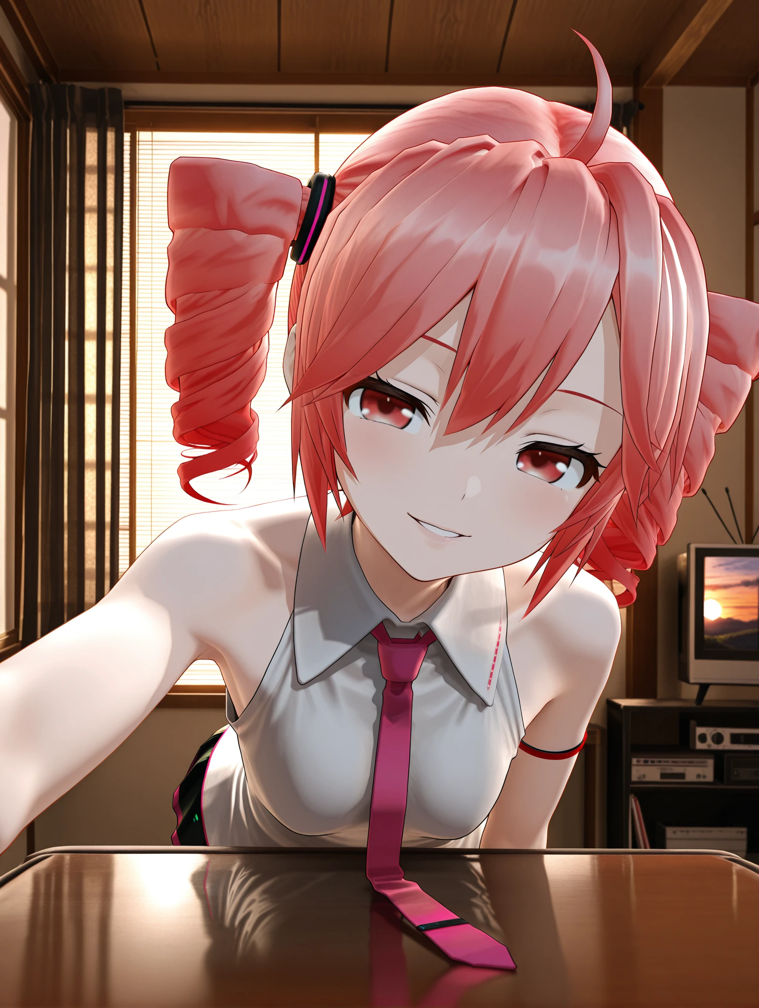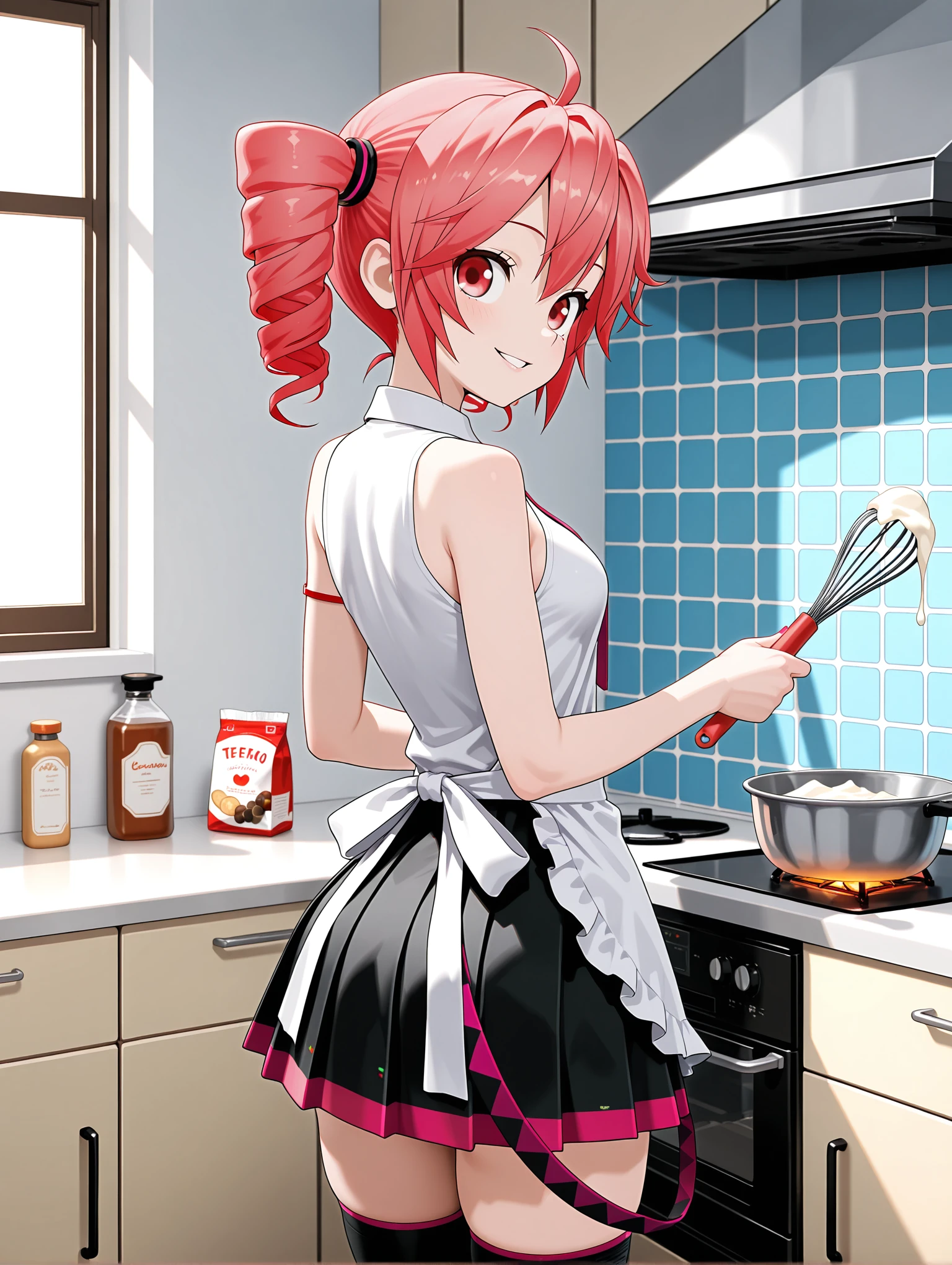 l_teto,ahoge,twin drills,red hair,red eyes,
