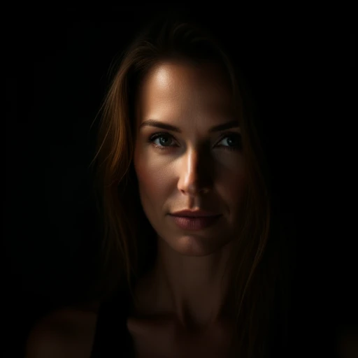 faces emerge naturally from shadow, skin retains organic texture and warmth, hair flows in soft painterly strands, and environments are defined by light interaction rather than excessive detail.