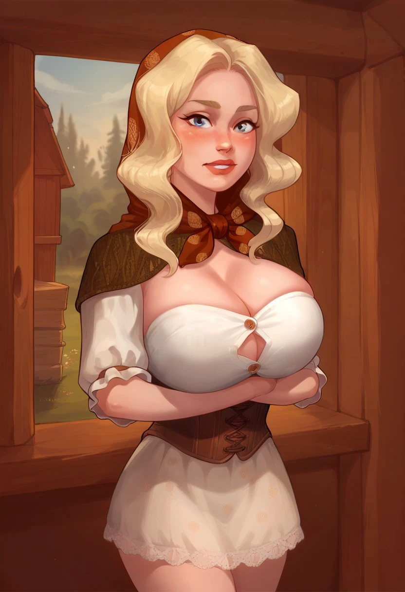 Outfit 1 - white blouse, head scarf, corset, dress, skirt