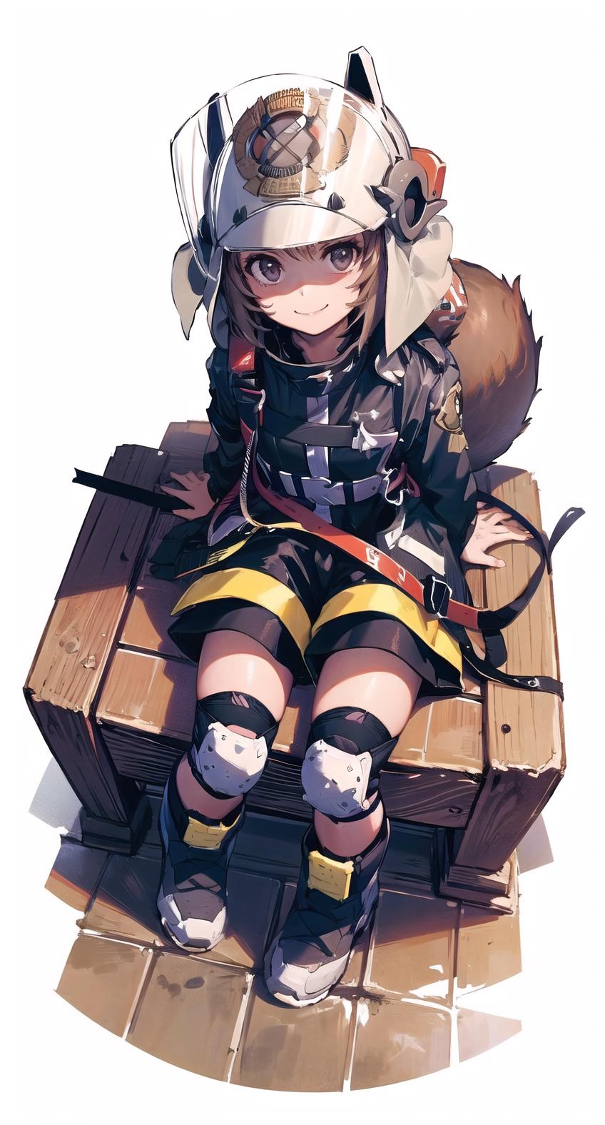 jacket, shorts, knee pads,boots,squirrel tail,