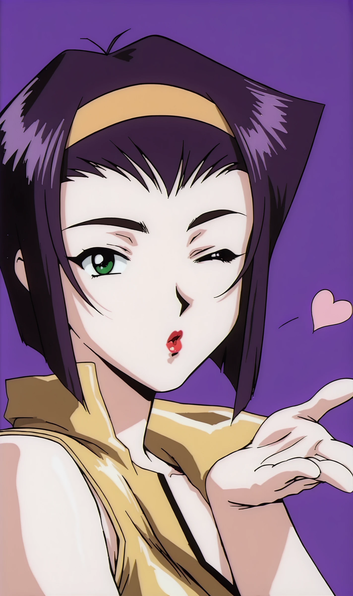 Main head features-'purple hair, short hair, green eyes, red lips'