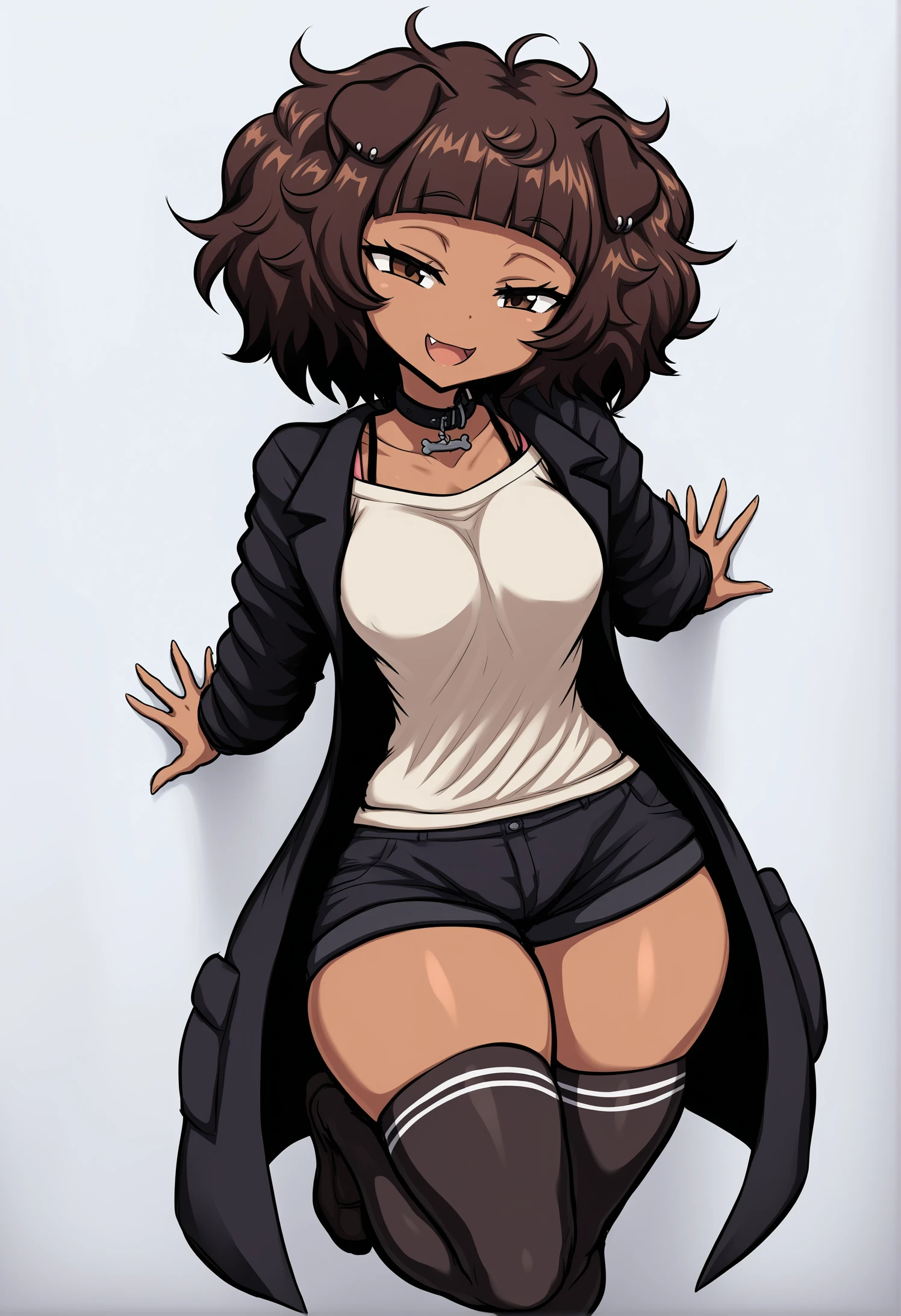 futanari, small (or medium) breasts, black hair, blunt bangs