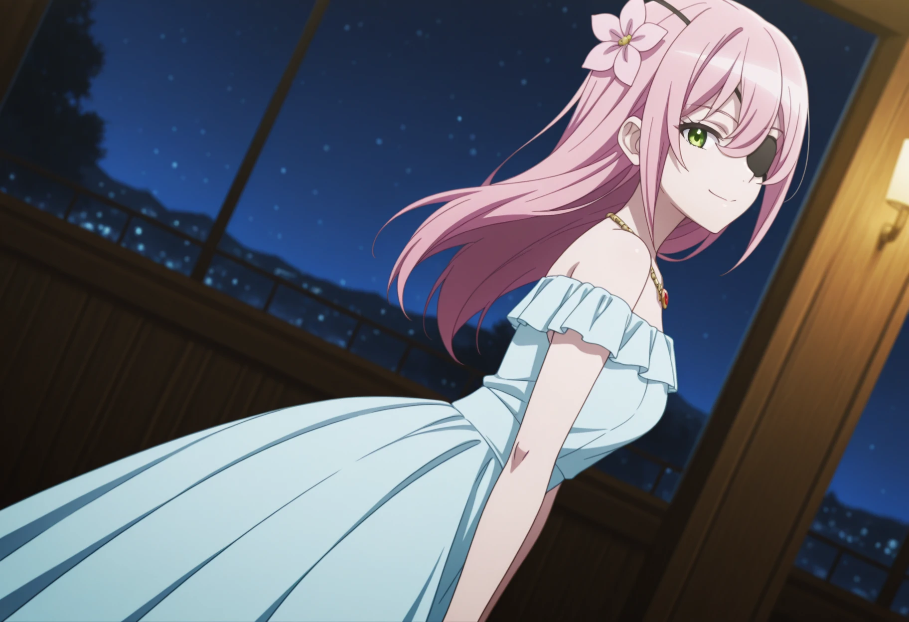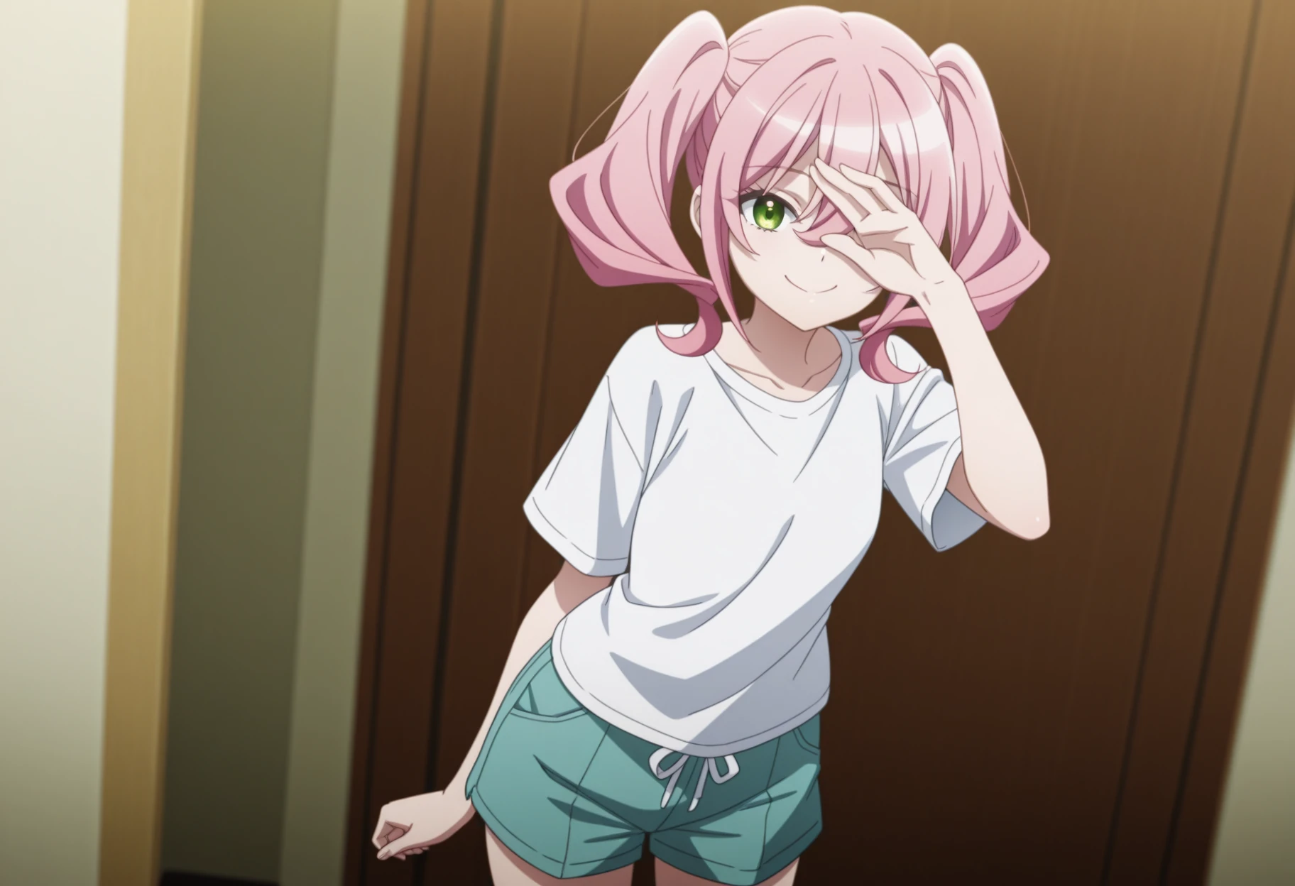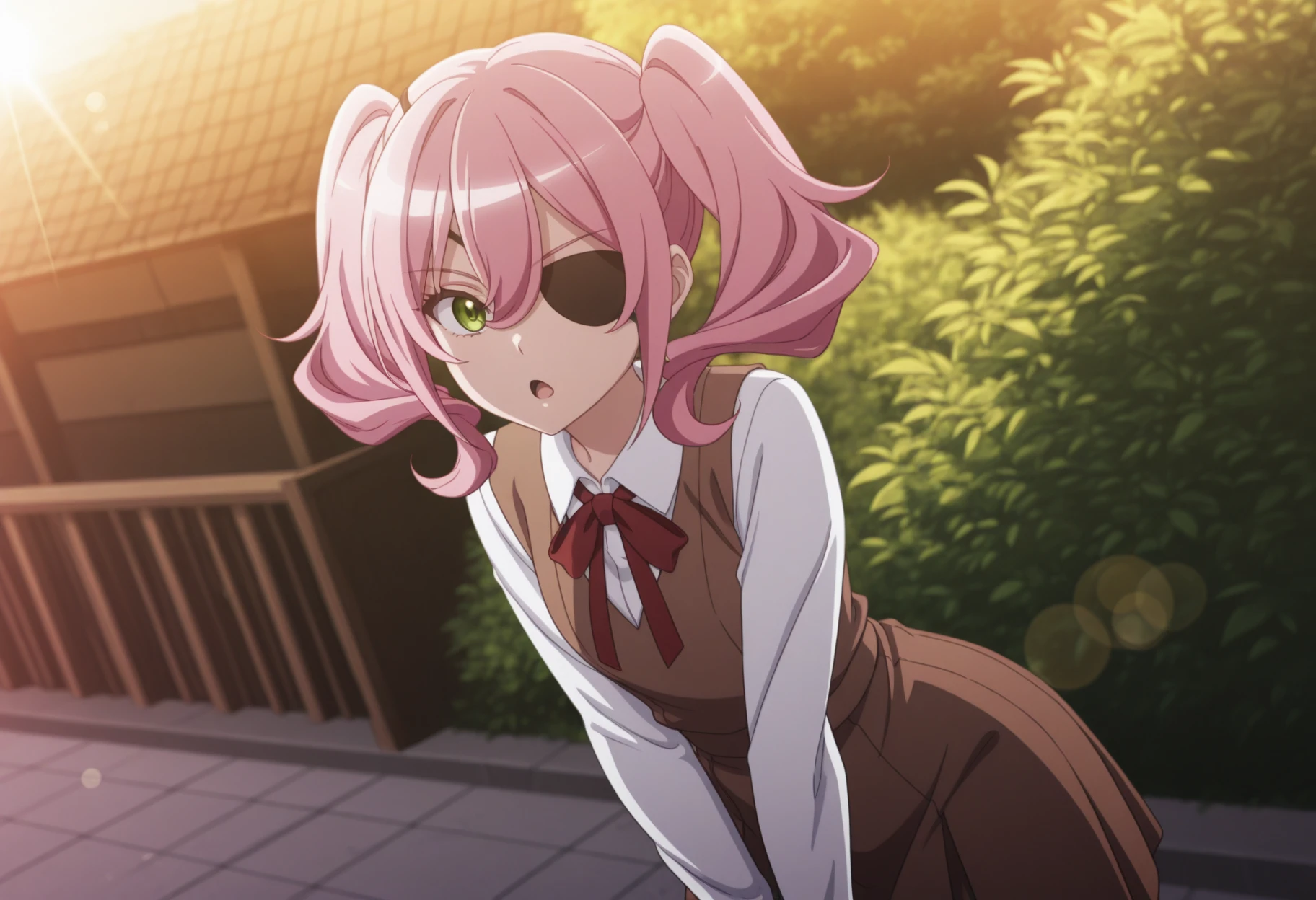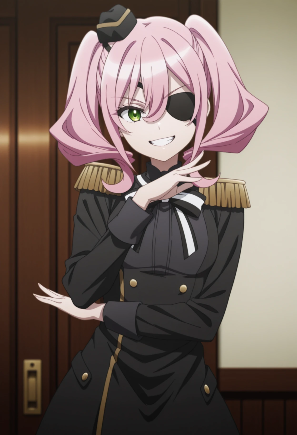 Trigger Words: bouga_spyclassroom, pink hair, eyepatch, twintails, green eyes, hair between eyes
