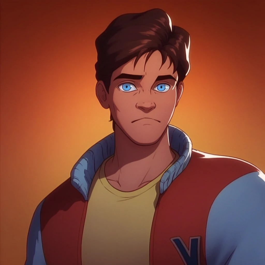 Kev1n, 1boy, male focus, solo, blue eyes, brown hair,
