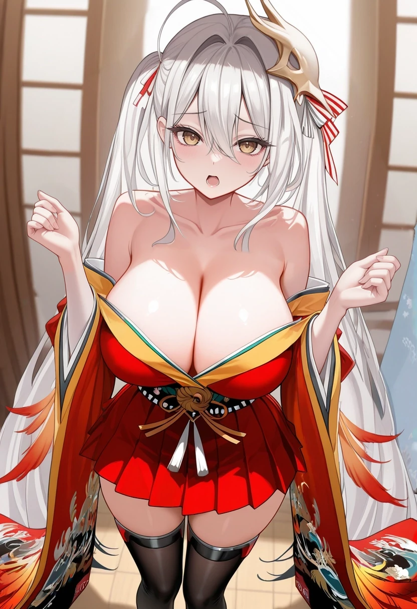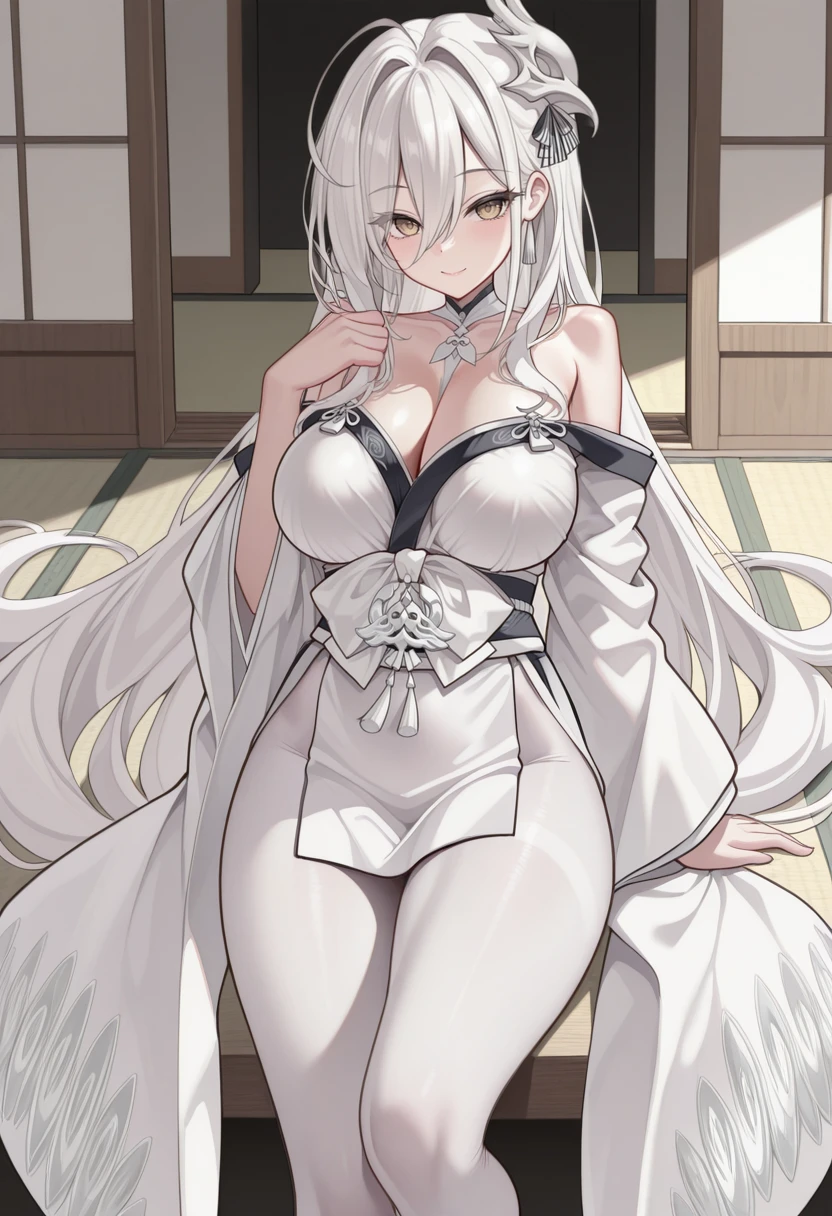 japanese clothes,white pantyhose,off shoulder,hair ornament,