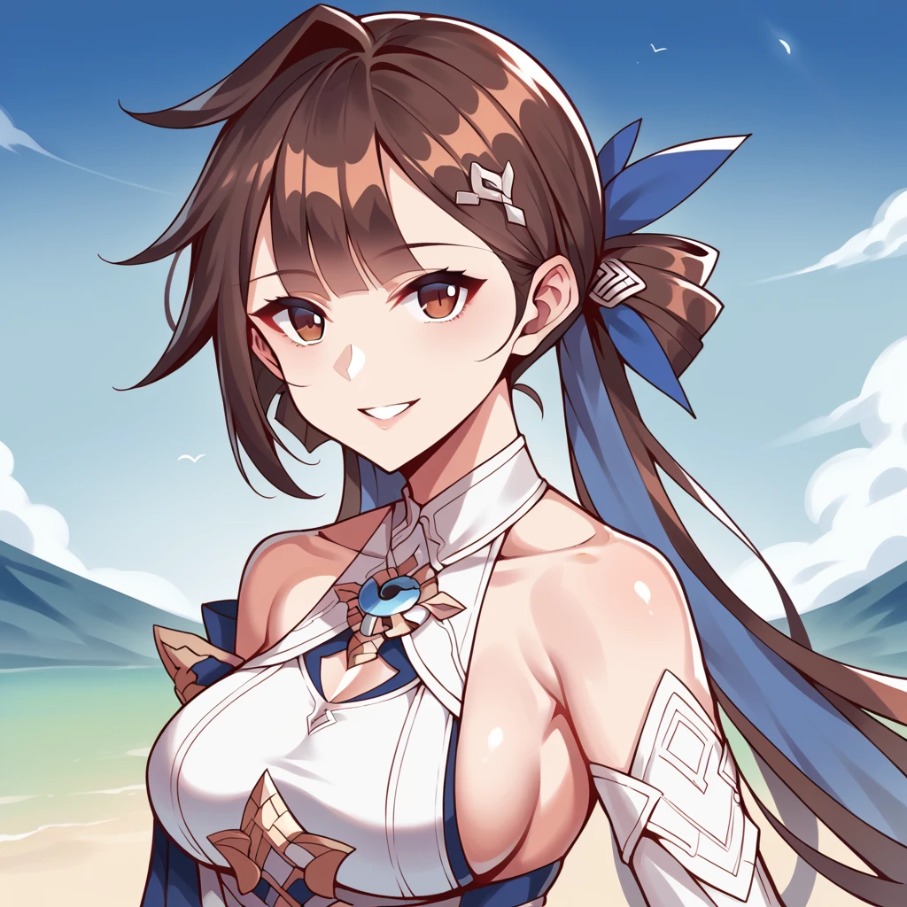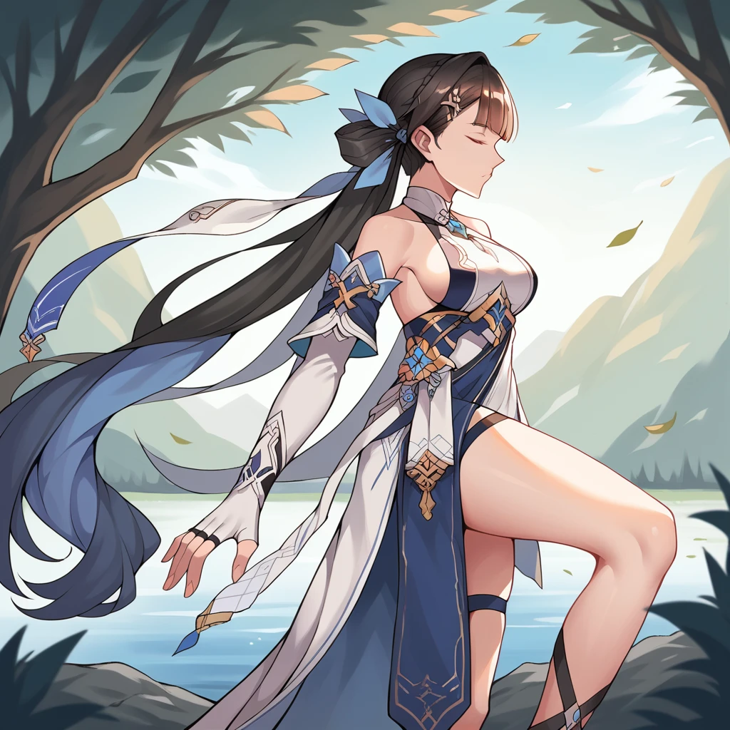 SusHi3, Li Sushang, hair rings, brown eyes, brown hair, long hair, braid, twintails,Disclaimer: First of all I don't know the name of the battlesuit, I Google Translated the Chinese Name and got "Quick Trip". Secondly It's separate from the v2.0, because that Asymmetrical Top of the Outfit does not work, when you have other outfits as well, so 2 LoRAs it is.
