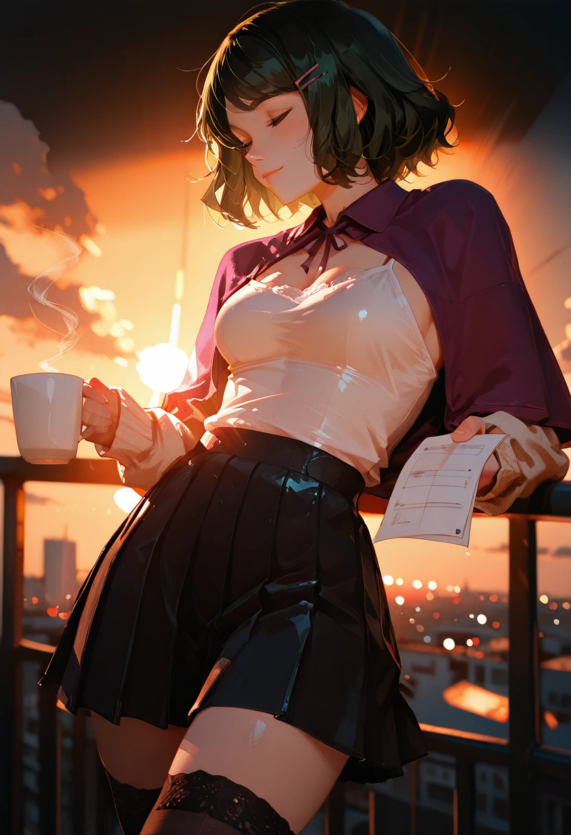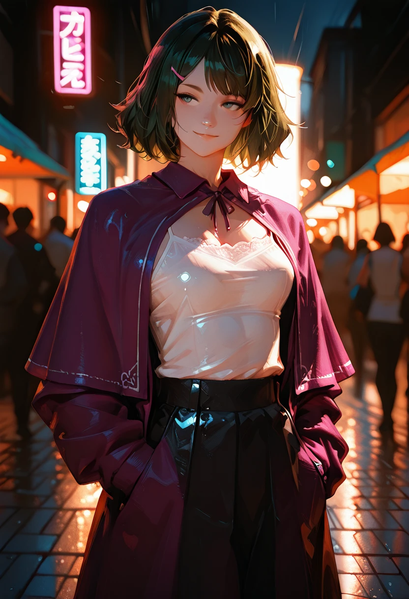 Though typically seen in elegant layered robes, a dark green satin outer layer, a purple capelet, and light ivory garments beneath, she moves with a natural grace that hints at confidence beneath her modest exterior. She carries herself with calm poise, speaking gently, observing keenly, and thinking deeply before offering insight. Her mind is razor-sharp; she excels in magical theory, elemental structure, and historical spell foundations. Many at the library rely on her for guidance, despite her tendency to fade quietly into the background.