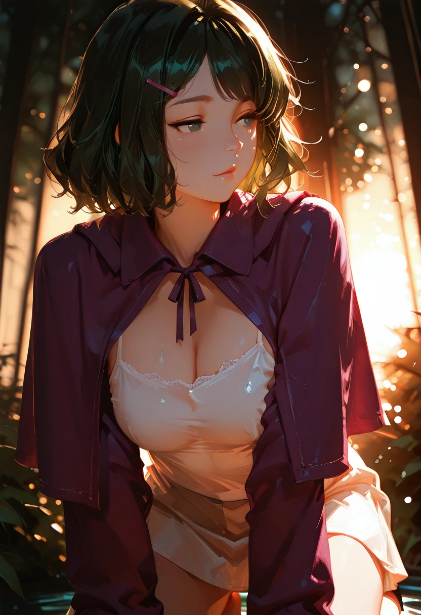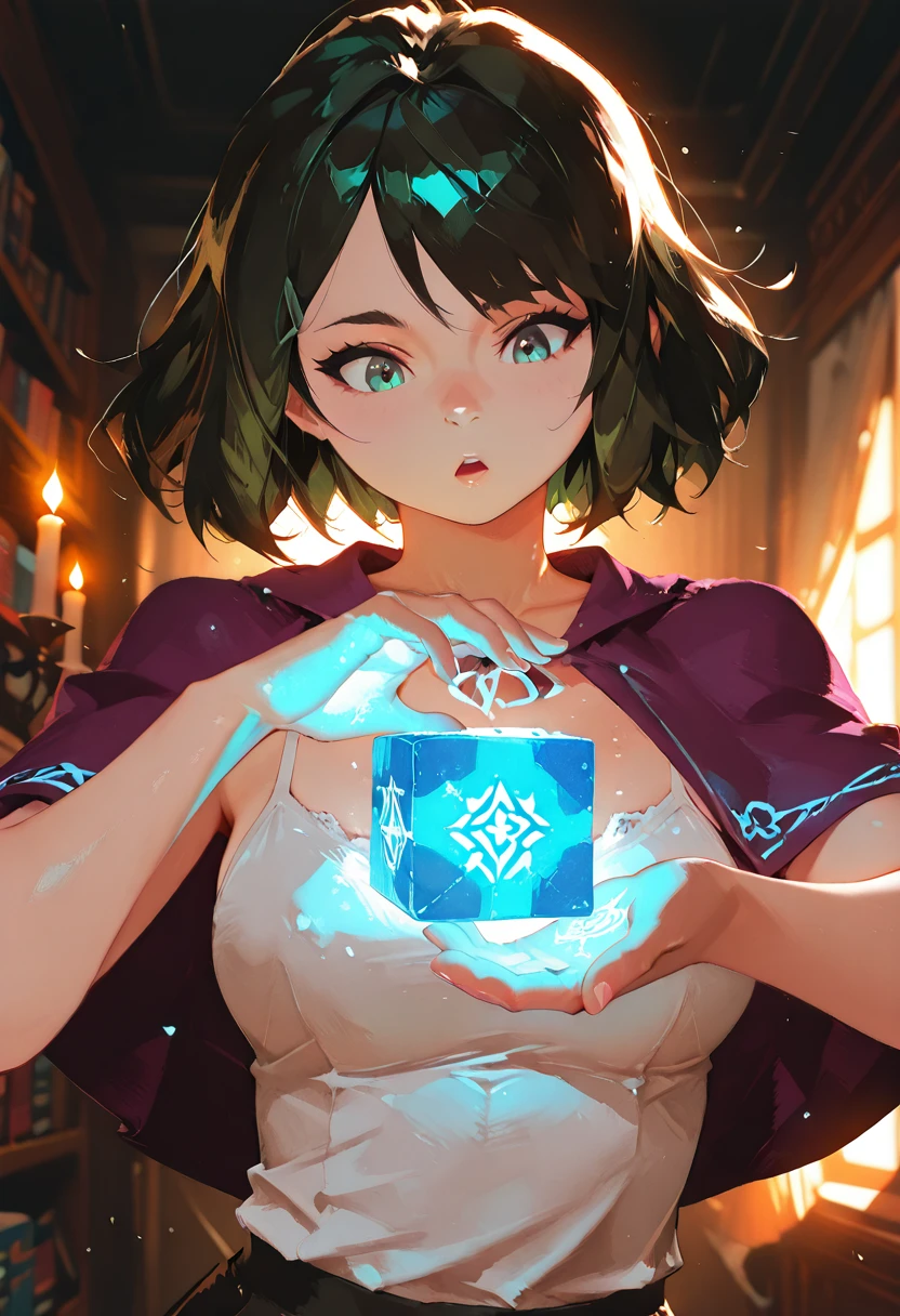 Khloe is a reserved and brilliant young scholar who spends most of her days immersed in ancient tomes, forgotten manuscripts, and arcane diagrams. With a slender build, luminous pale complexion, and deep emerald eyes framed by long lashes, she appears every bit the quiet academic. Her dark green wavy hair, usually tied or tucked neatly behind a hairclip, softens her features and gives her approachable, studious charm.