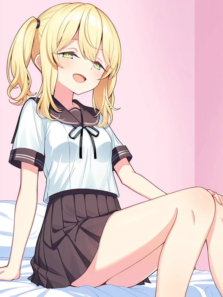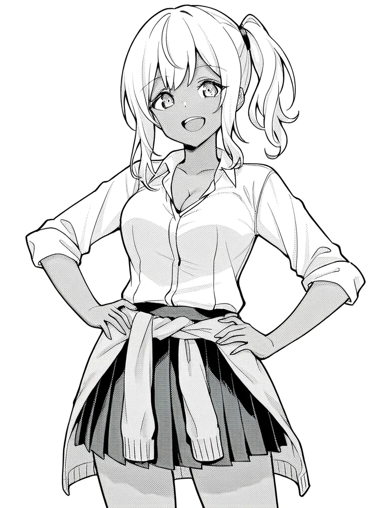 • riyo sr, grey hair, twintails, small breasts,