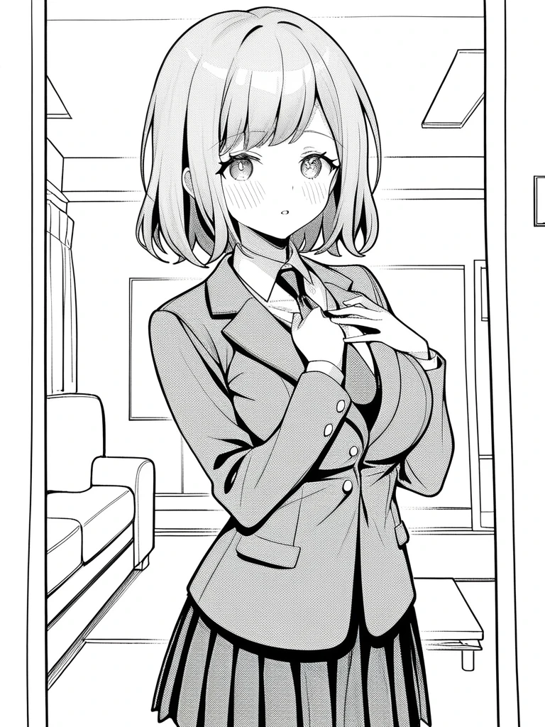 • anri sr, medium hair, black hair, large breasts,