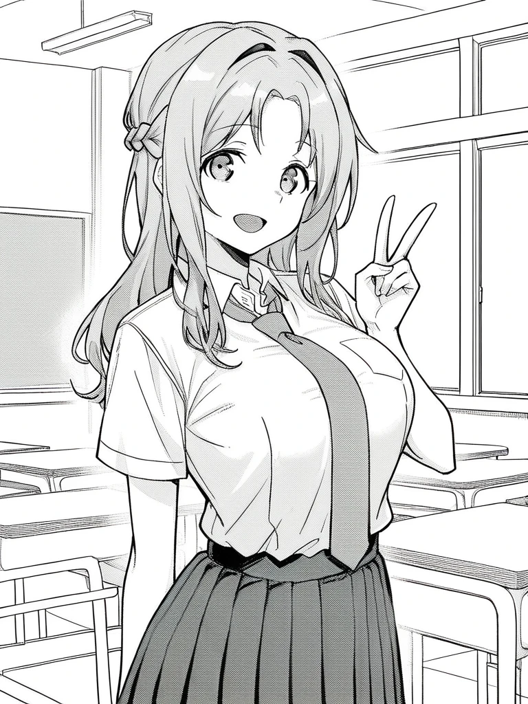 • chisato sr, medium hair, grey hair, large breasts,