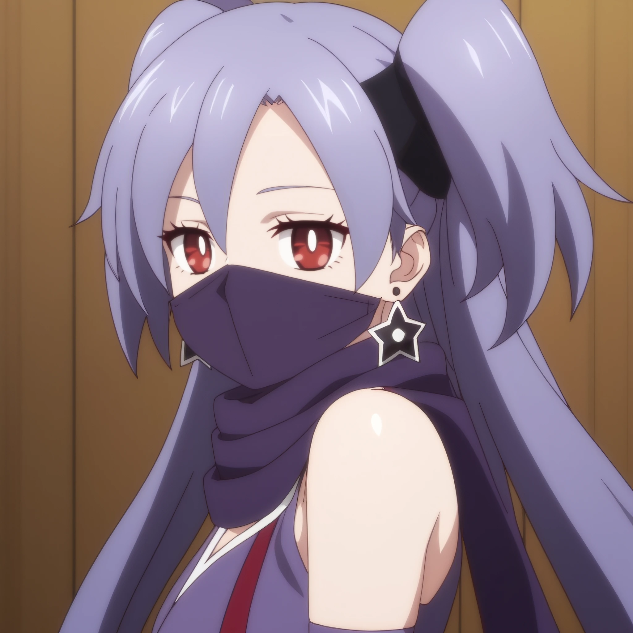 AsukaNinja, gloves, mask, bare shoulders, covered mouth, mouth mask, ninja scarf, thighhighs, elbow gloves,