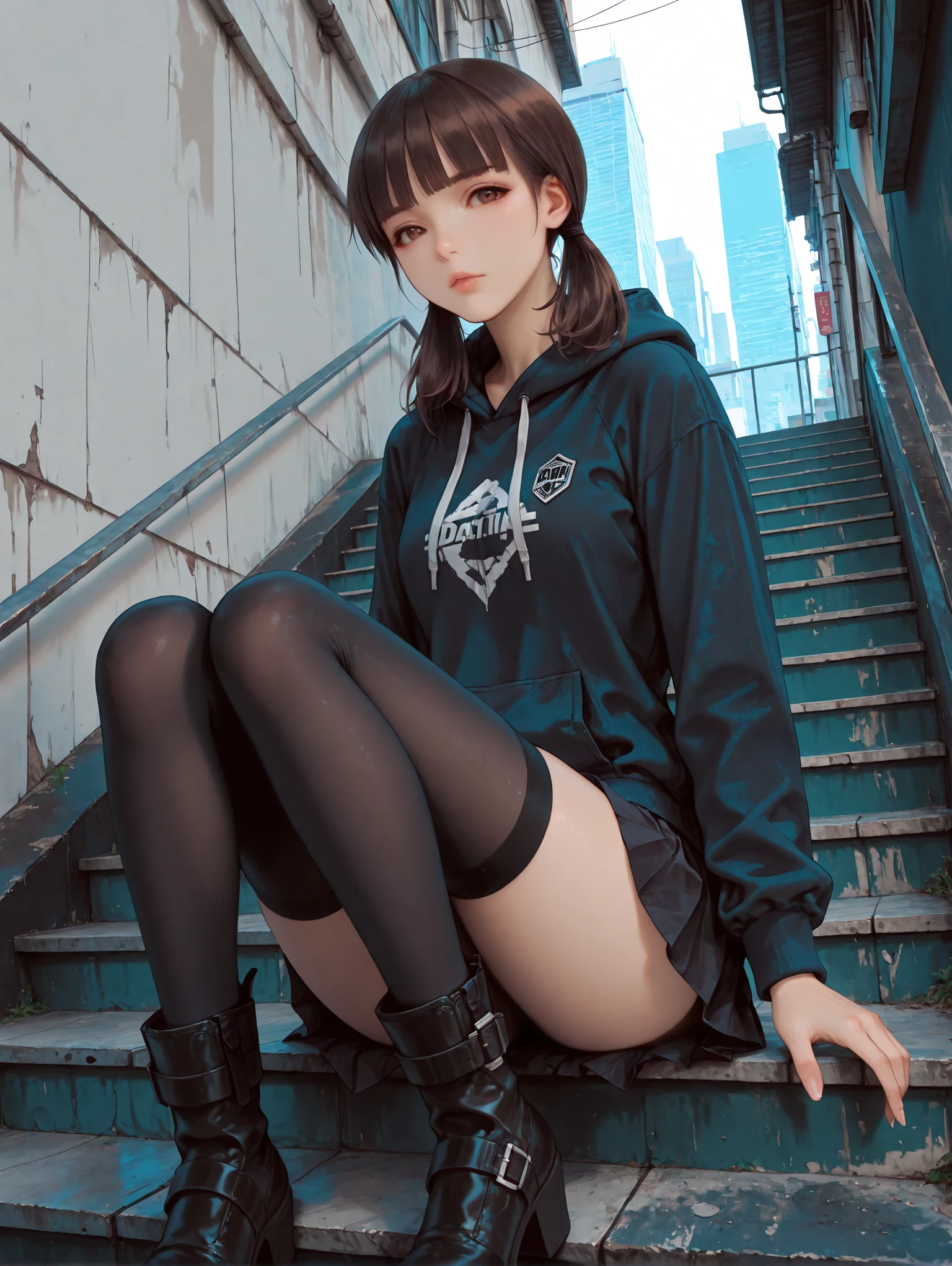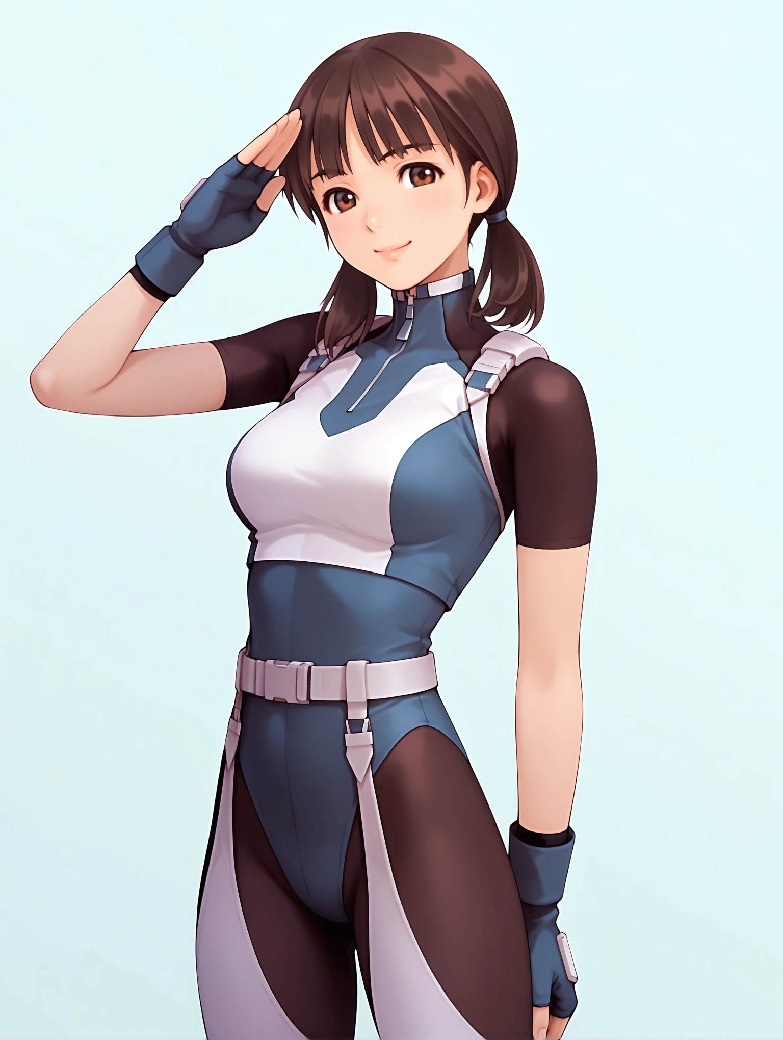 r_miao,brown hair,blunt bangs,brown eyes,short twintails,low twintails,