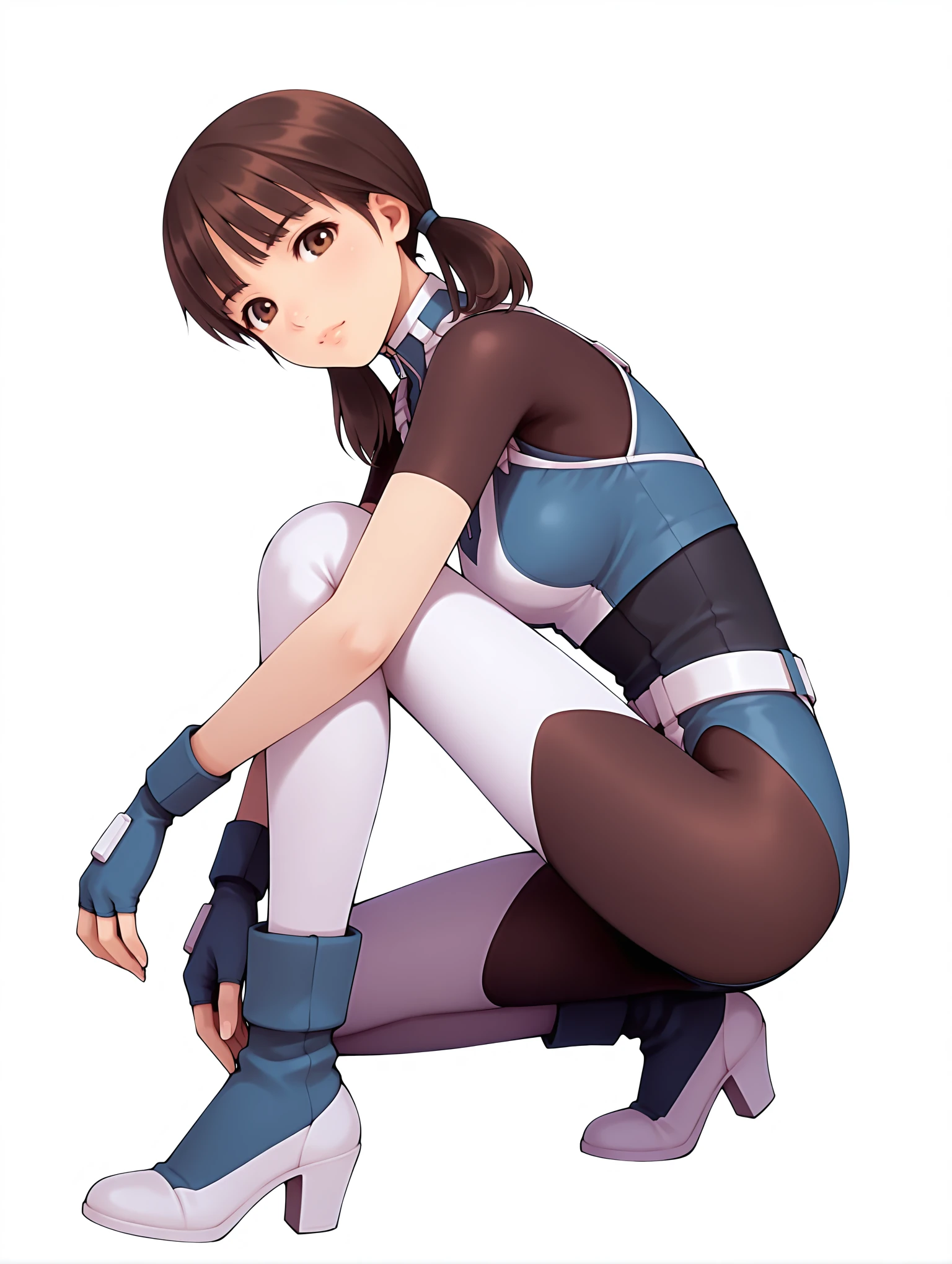 m_suit,turtleneck,skin tight,,crop top,short sleeves,fingerless gloves,leotard,high heels,shoes,