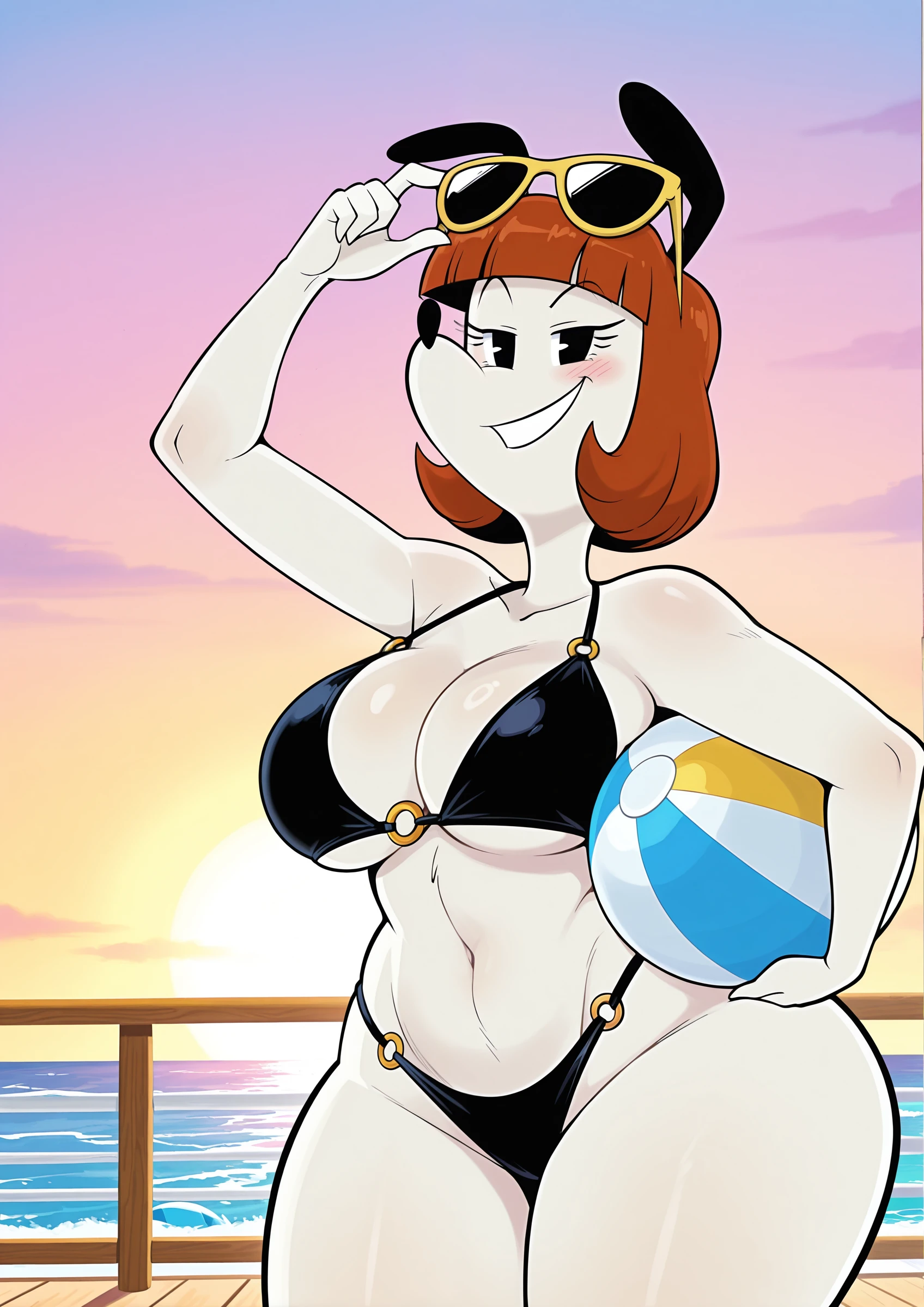 animal ears, orange hair, bobcut, bangs, black eyes