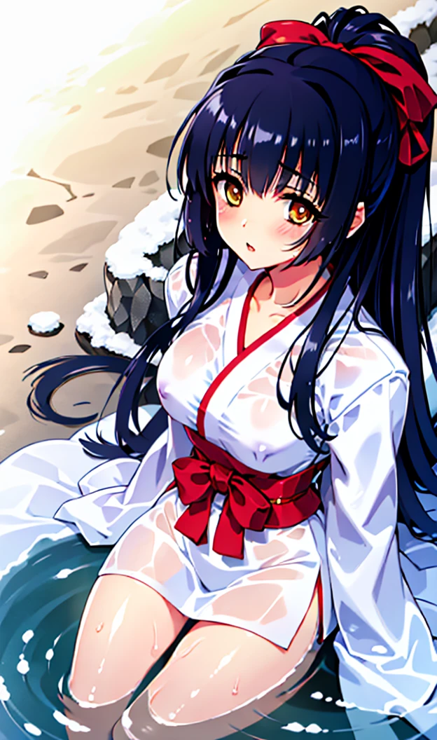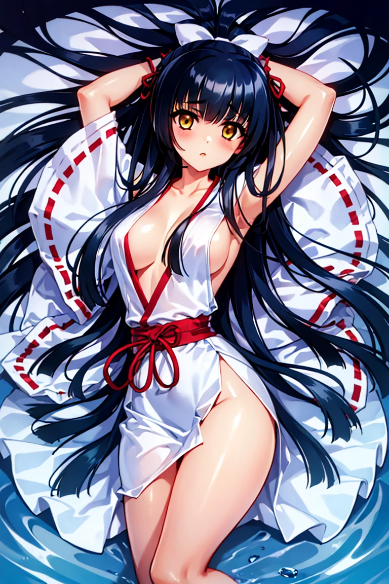 miko, japanese clothes,red hakama, hakama, tabi,hair ornament,see-through,