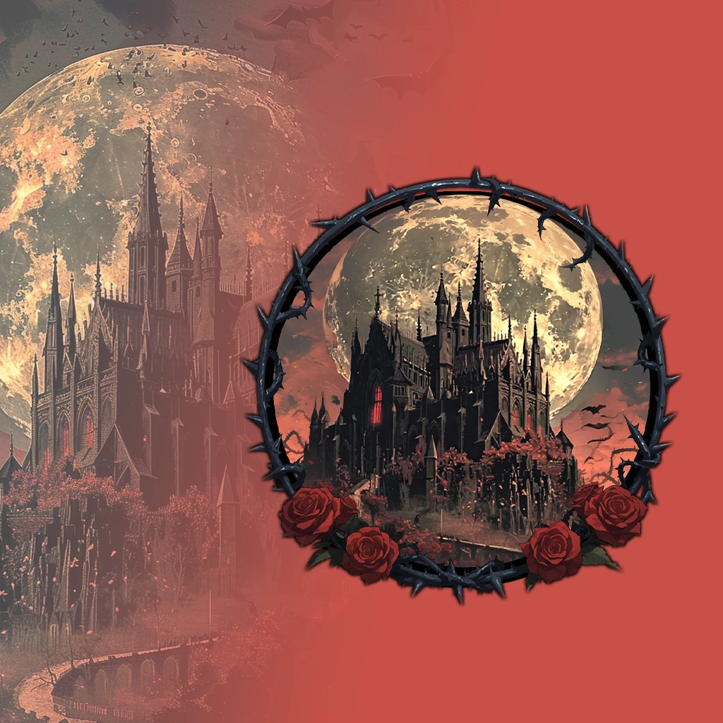 For example: “circle of black thorns and blood-red roses”