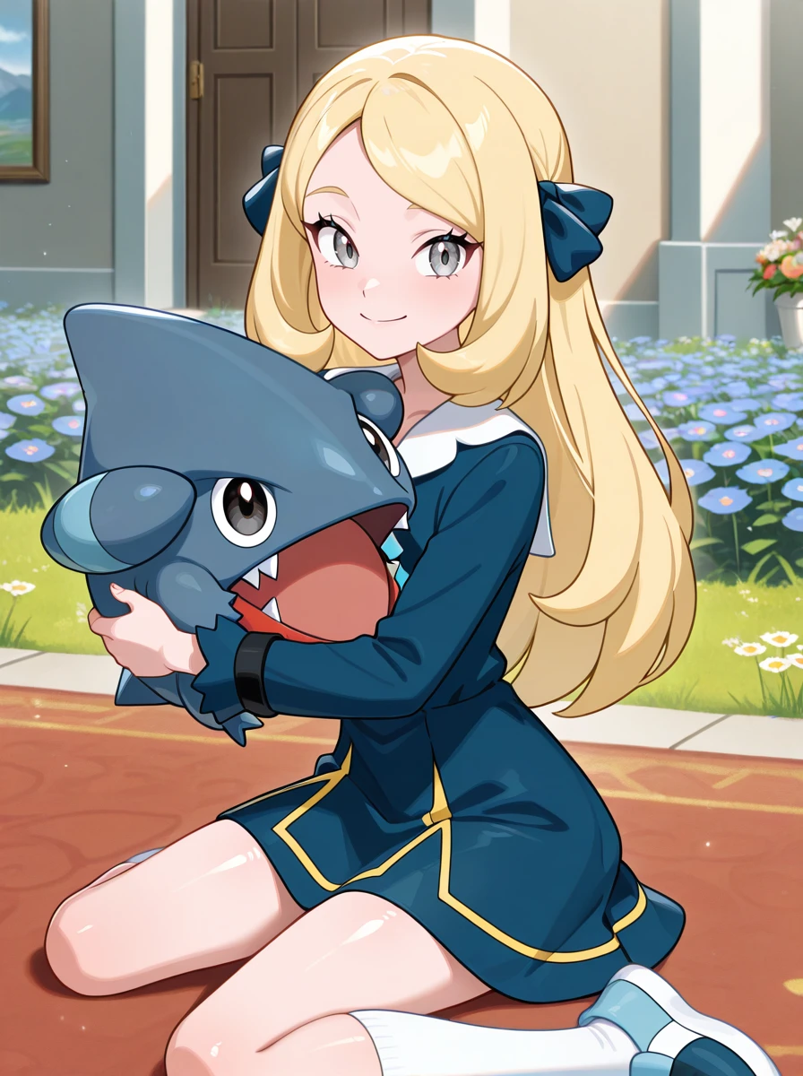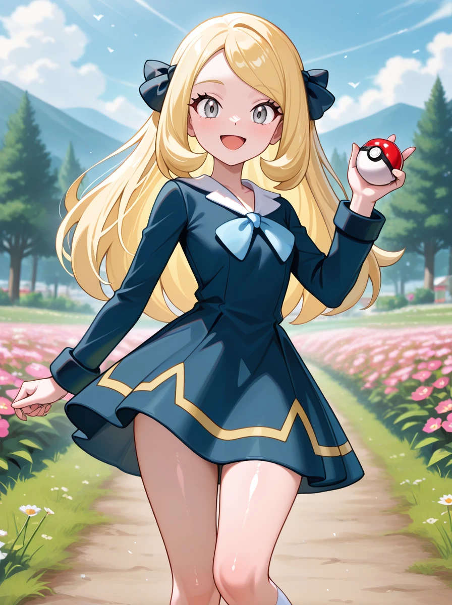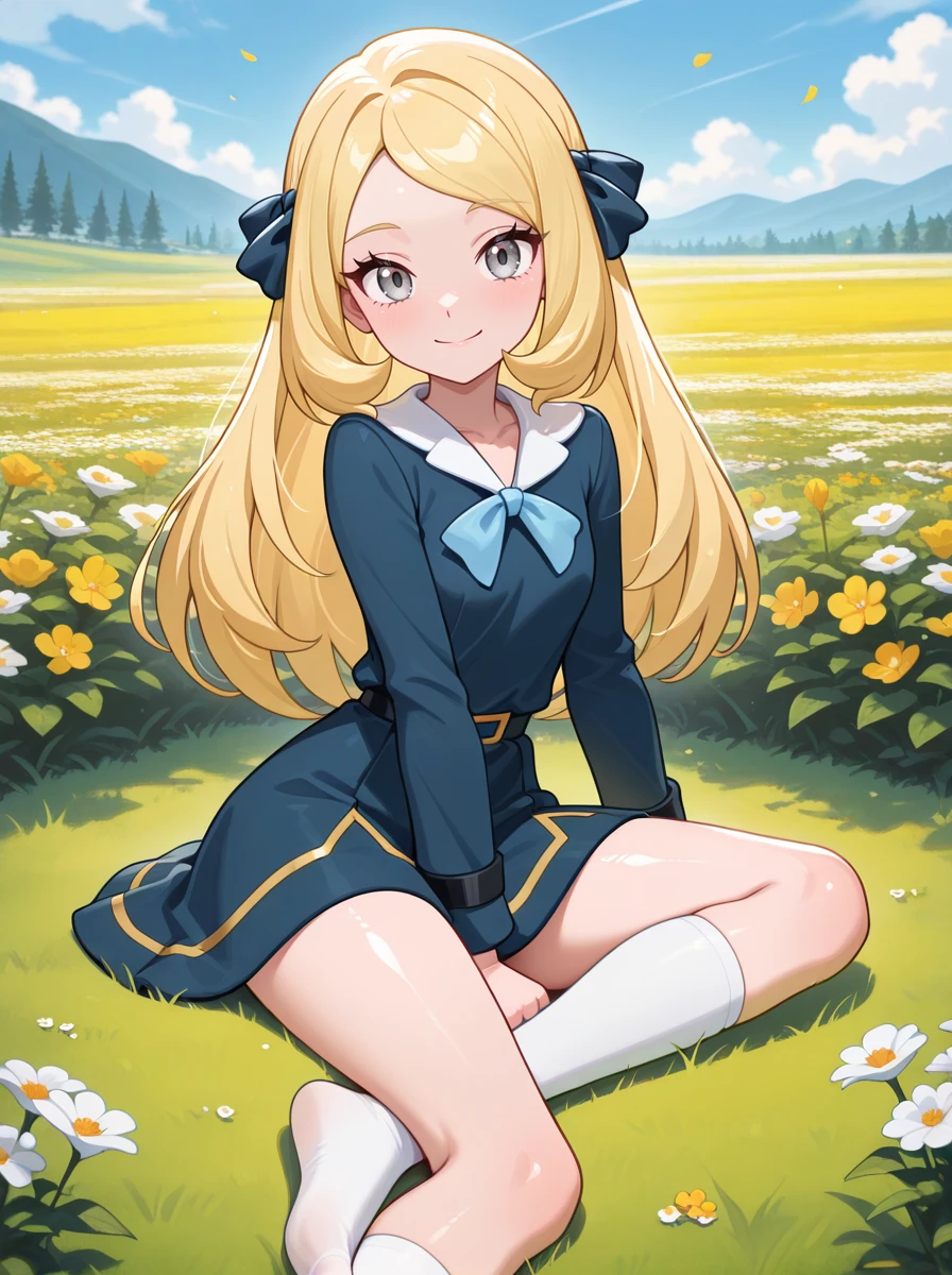 Prompts: 1girl, blonde hair, long hair, ribbon, grey eyes, dress, smile, hair ribbon, eyelashes