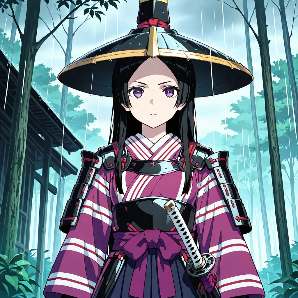 Satoko: Satoko, black hair, split bangs, parted bangs, long hair, purple eyes, small breasts