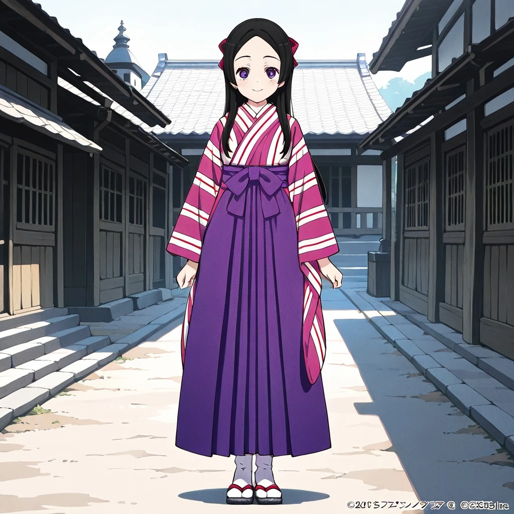 Extra: purple hakama, tabi, sandals, kimono, hair bow, red bow
