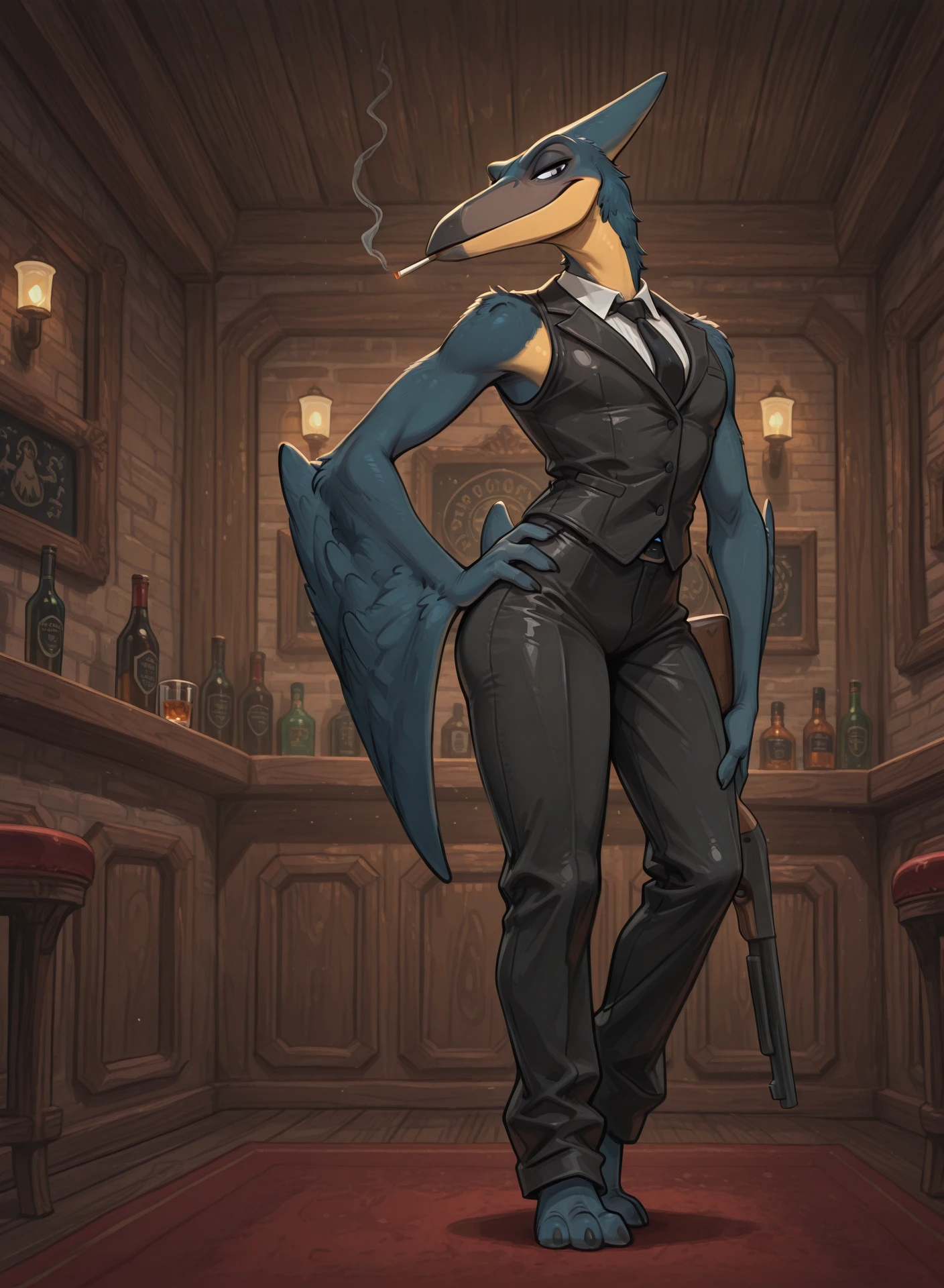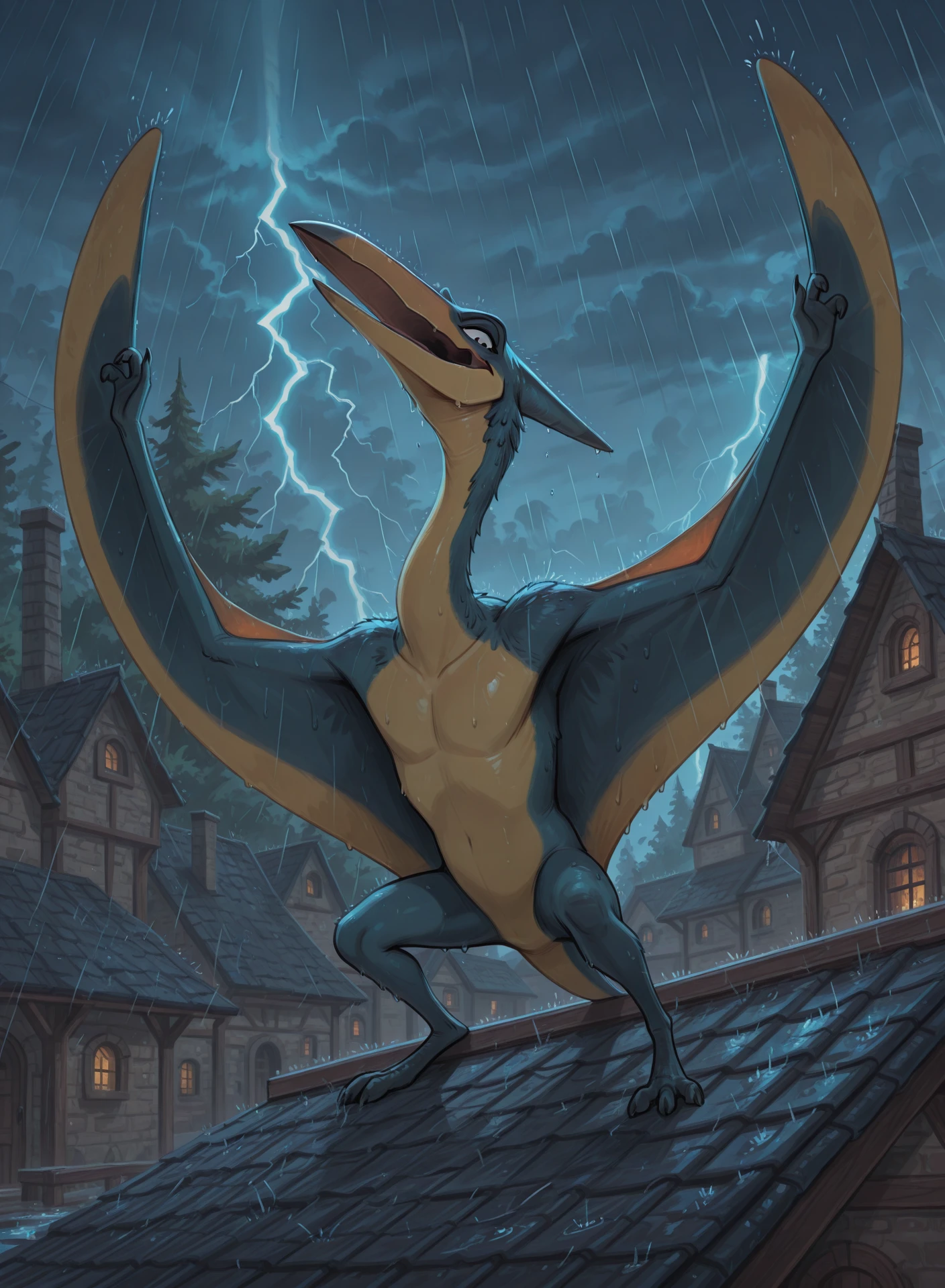 Azhdarchids are moderately to large sized pterosaurs, which lived in the Cretaceous period. Popoeilo is one of them, although of an unknown kind. He is troublemaker from Little Pteronia, a pterosaur city from which he was banished. After doing some shady business in Metallonia, which got him kicked out from the city, Popoeilo followed a trade caravan to Fungilla. The quiet village turned out to be the source of scarlet glowshrooms, which are rumored to be an important eye drop ingredient. The folk tales say such medicine is able to cure any eye disorder! Since the sense of sight is important for any pterosaur, sucha medicine would make Popoeilo rich, famous, and powerful. And it could cure his own vision problems too...
