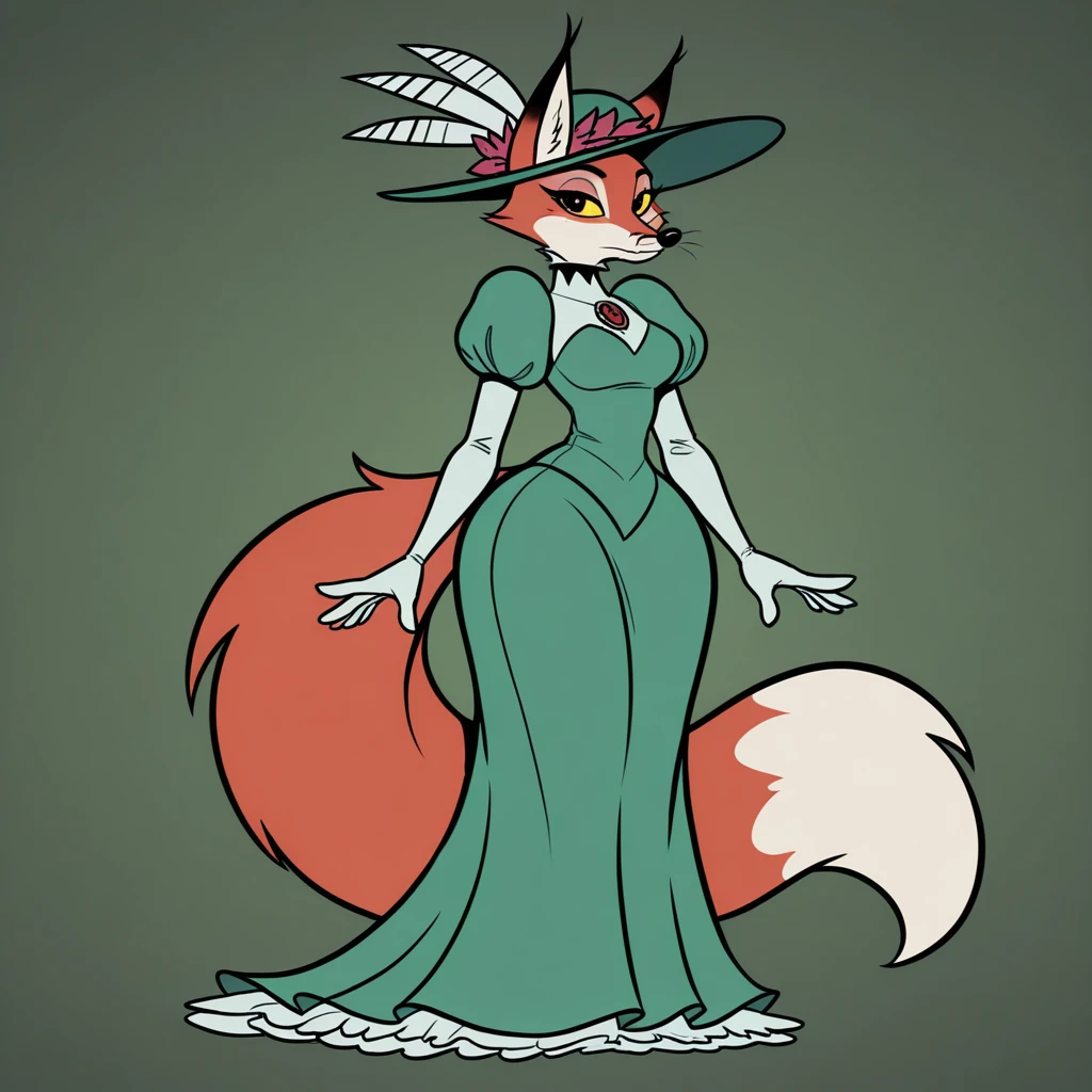 jun3_w4y, solo, fox, anthro, female, breasts, orange body, black nose, two tone body, yellow sclera, whiskers, eyelashes, wide hips, black lips, fluffy, cheek tuft, 5 fingers,