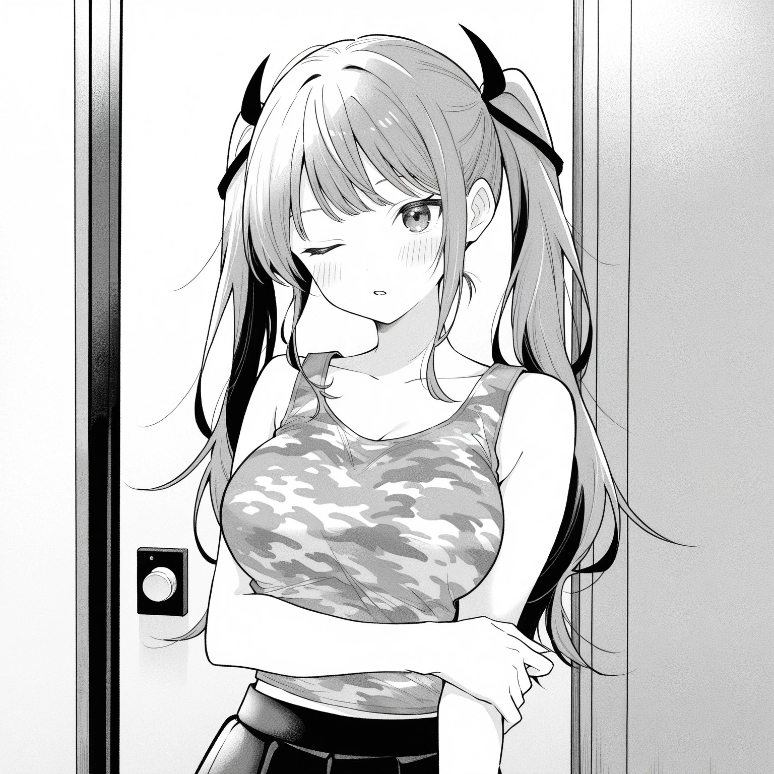 casual2: nencas2, tank top, skirt, camouflage, collarbone, sleeveless