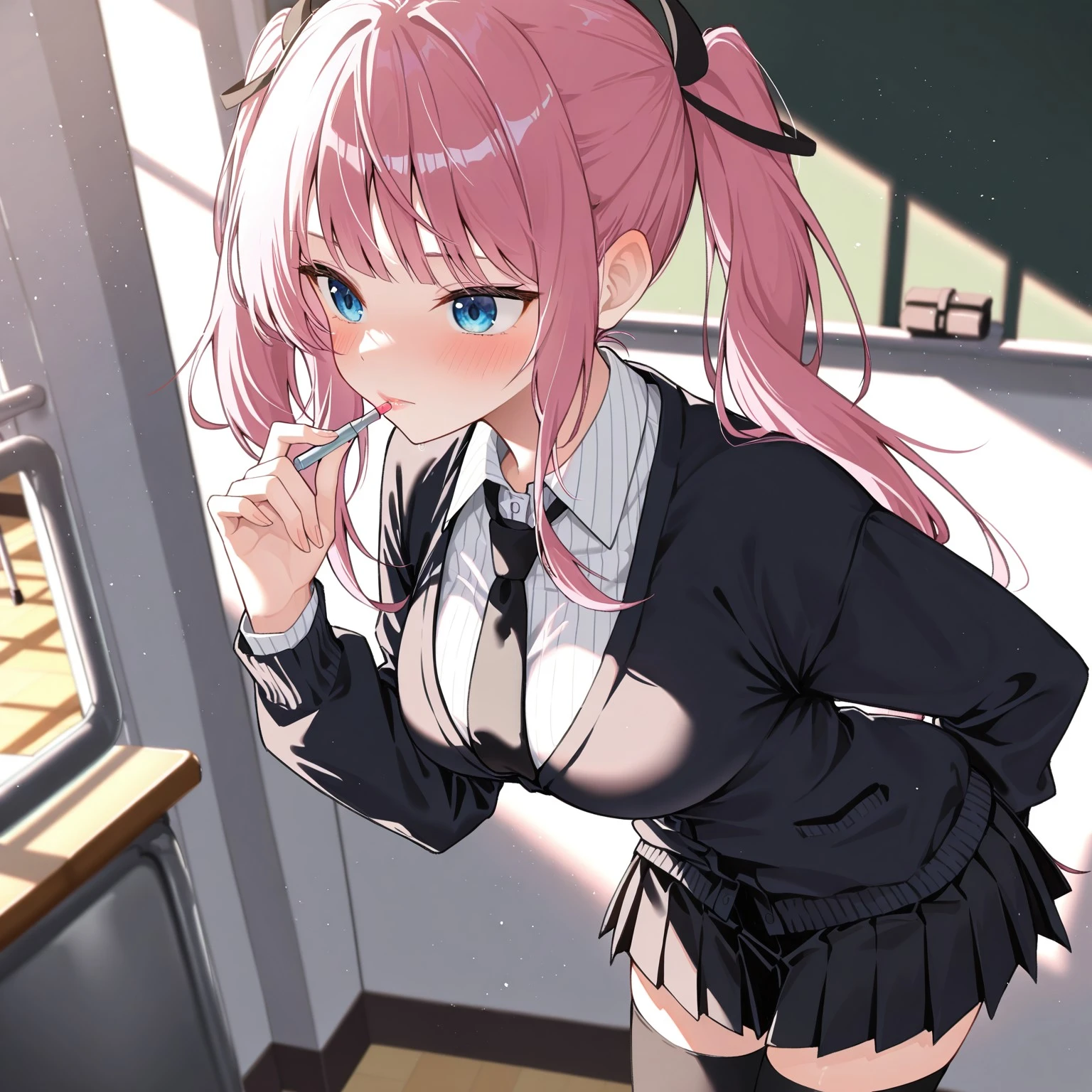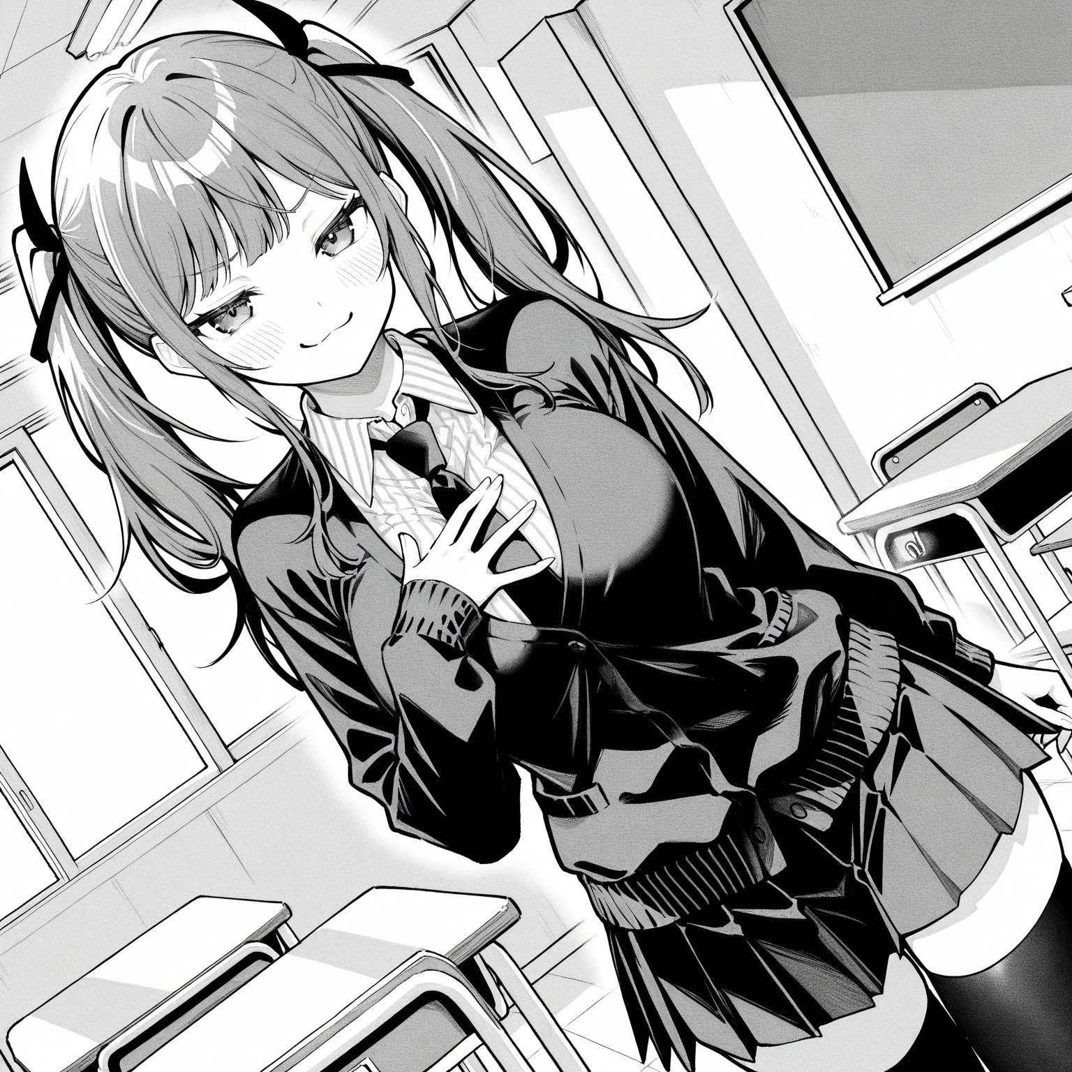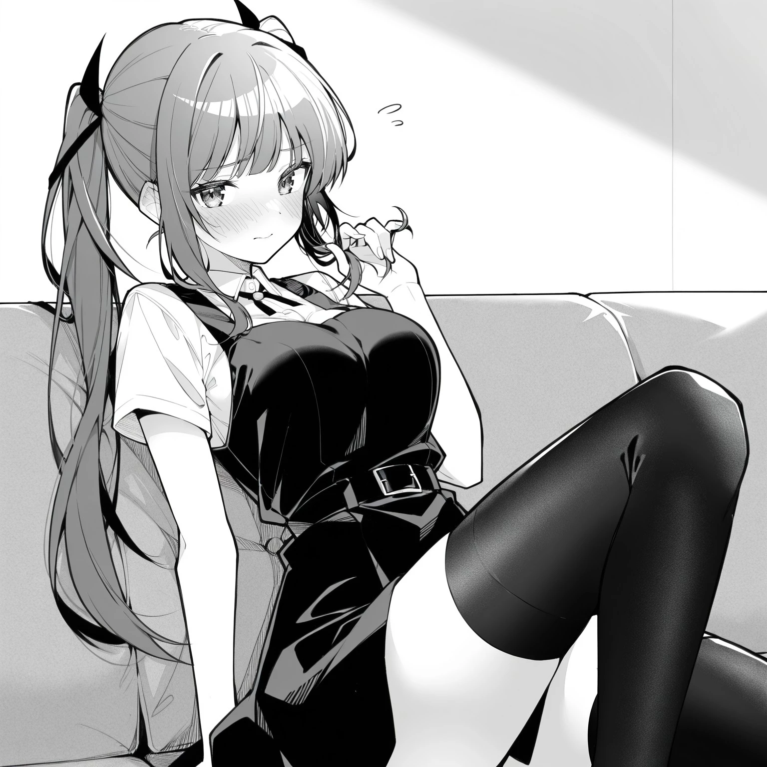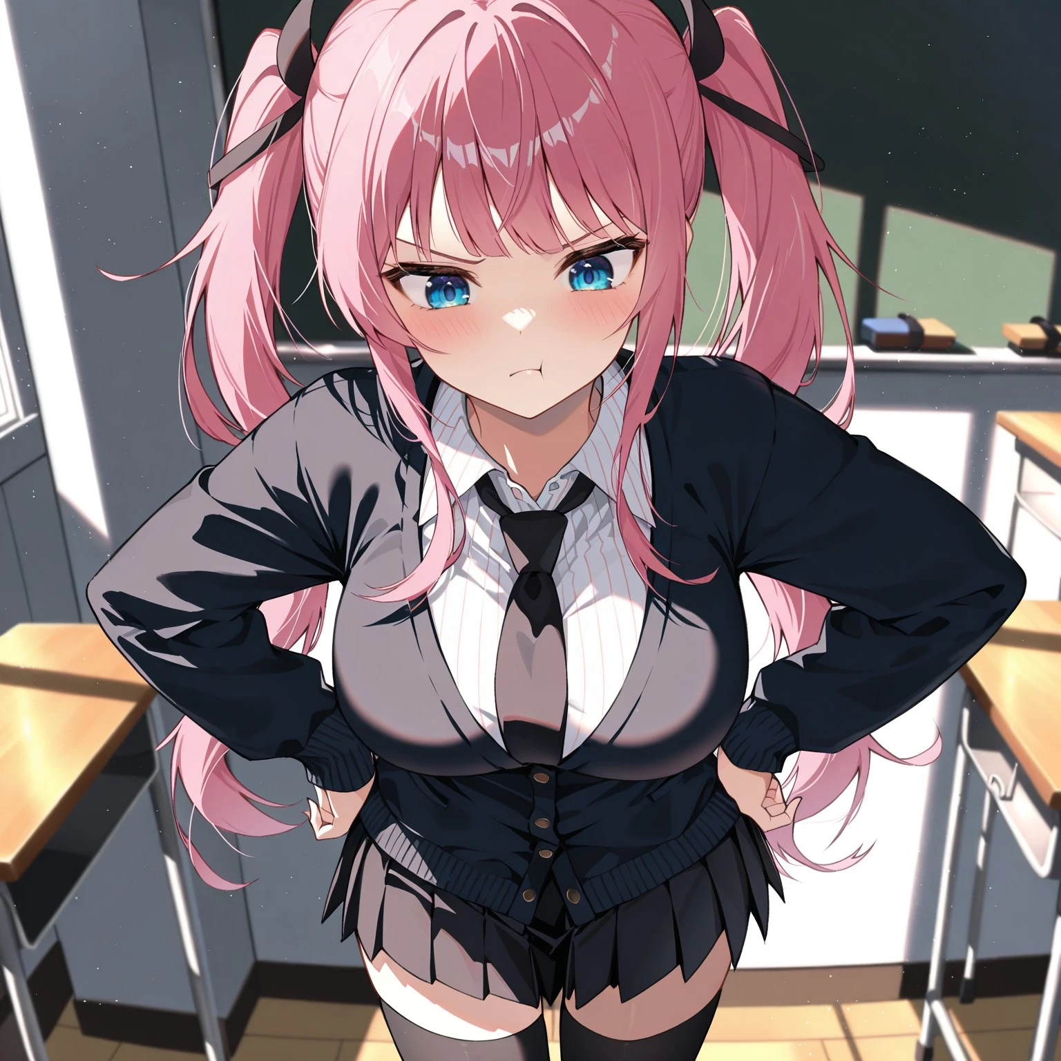 school: nensch, black necktie, white shirt, black skirt, black cardigan, black tighhighs