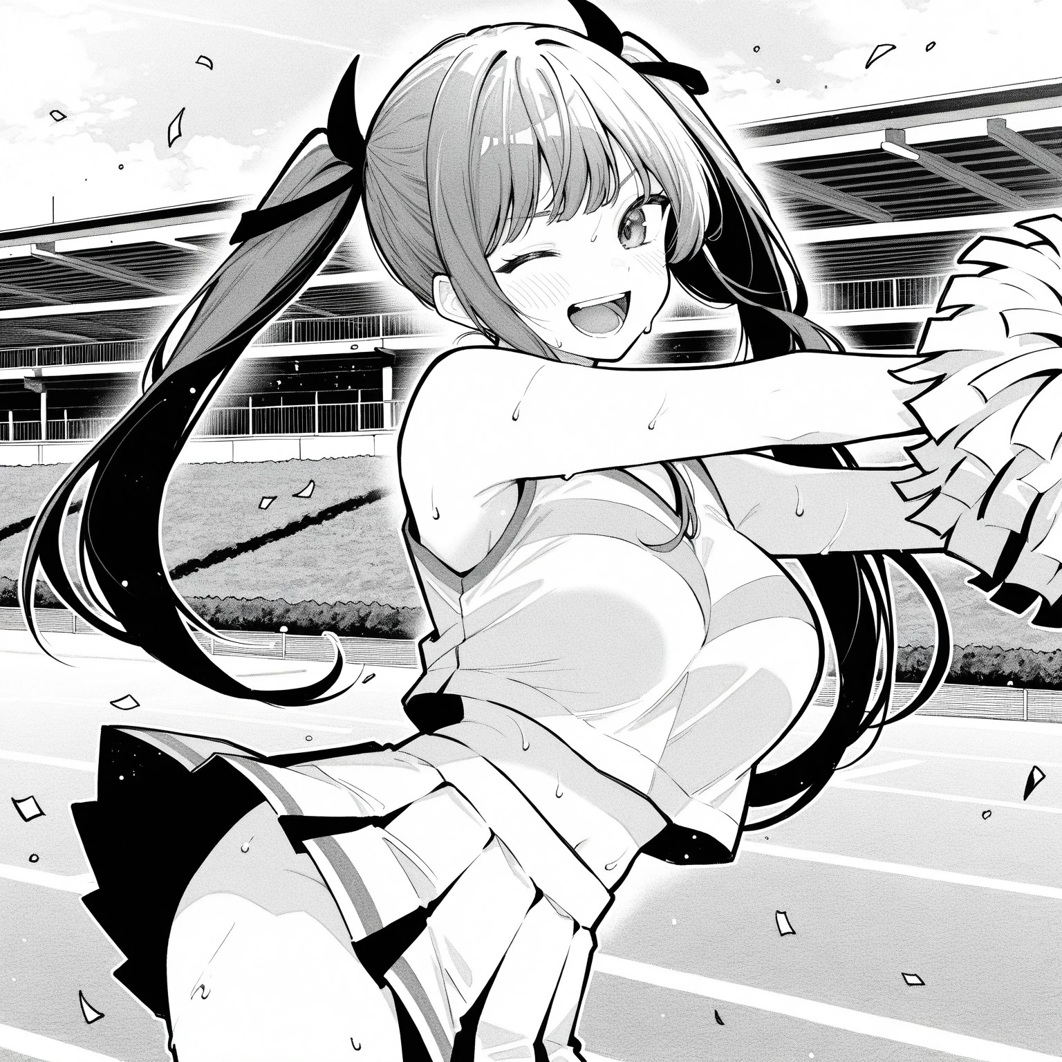 cheer: nench, pom_pom_(cheerleading), skirt, pleated skirt, cheerleader, midriff, crop top, sleeveless