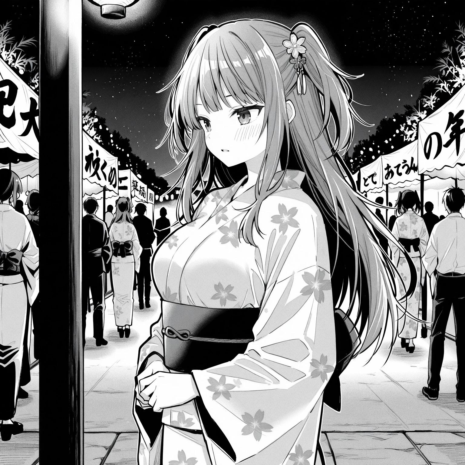 festival: nenfes, kimono, hair ornament, two side up, wide sleeves, long sleeves, japanese clothes, obi, floral print, sash