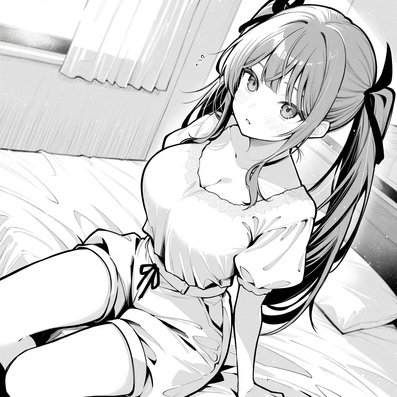 base: nenmng, 1girl, breasts, ribbon, long hair, twintails, hair ribbon, sidelocks