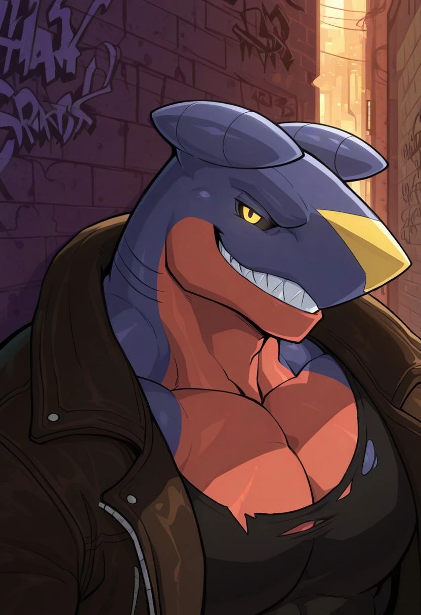 B4ss, Garchomp, Shark, black sclera, Yellow pupils