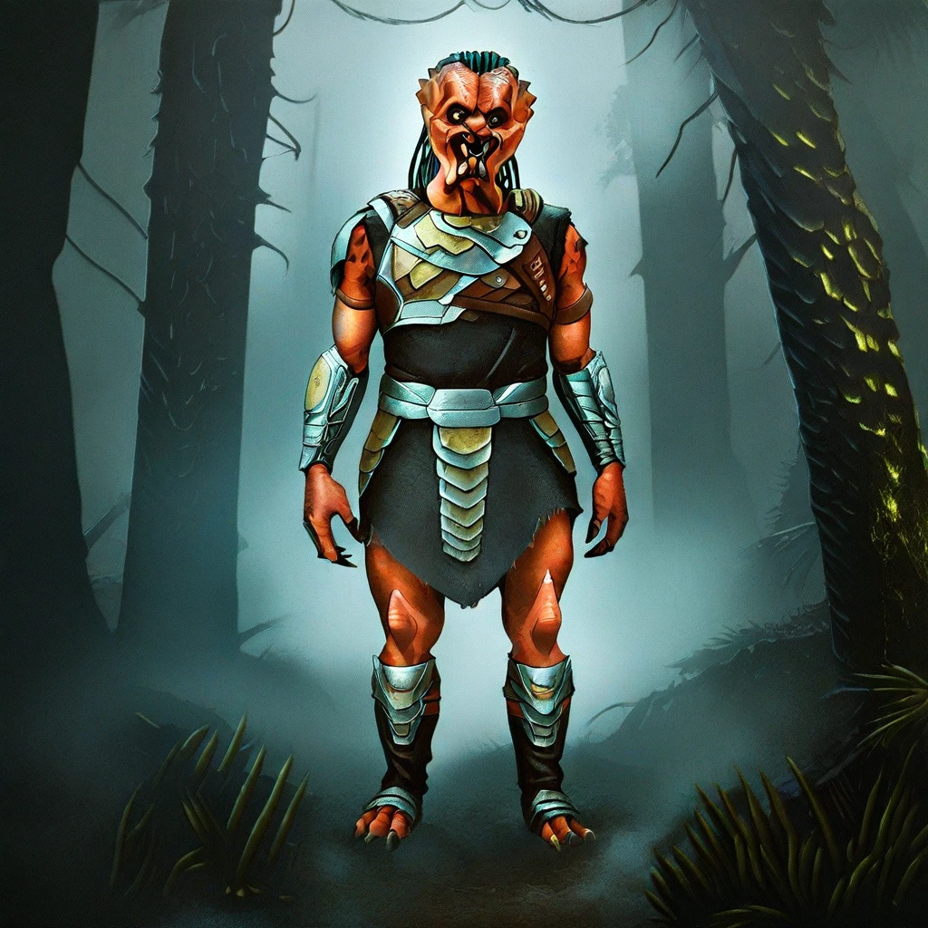 Dek(character), alien, male, dreadlocks, alien fangs, alien armour,