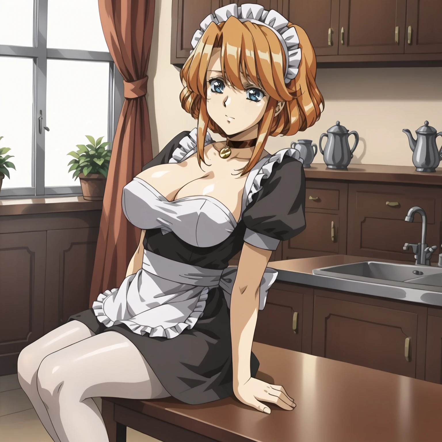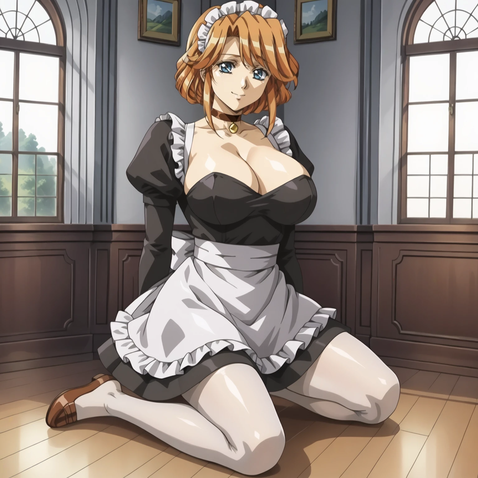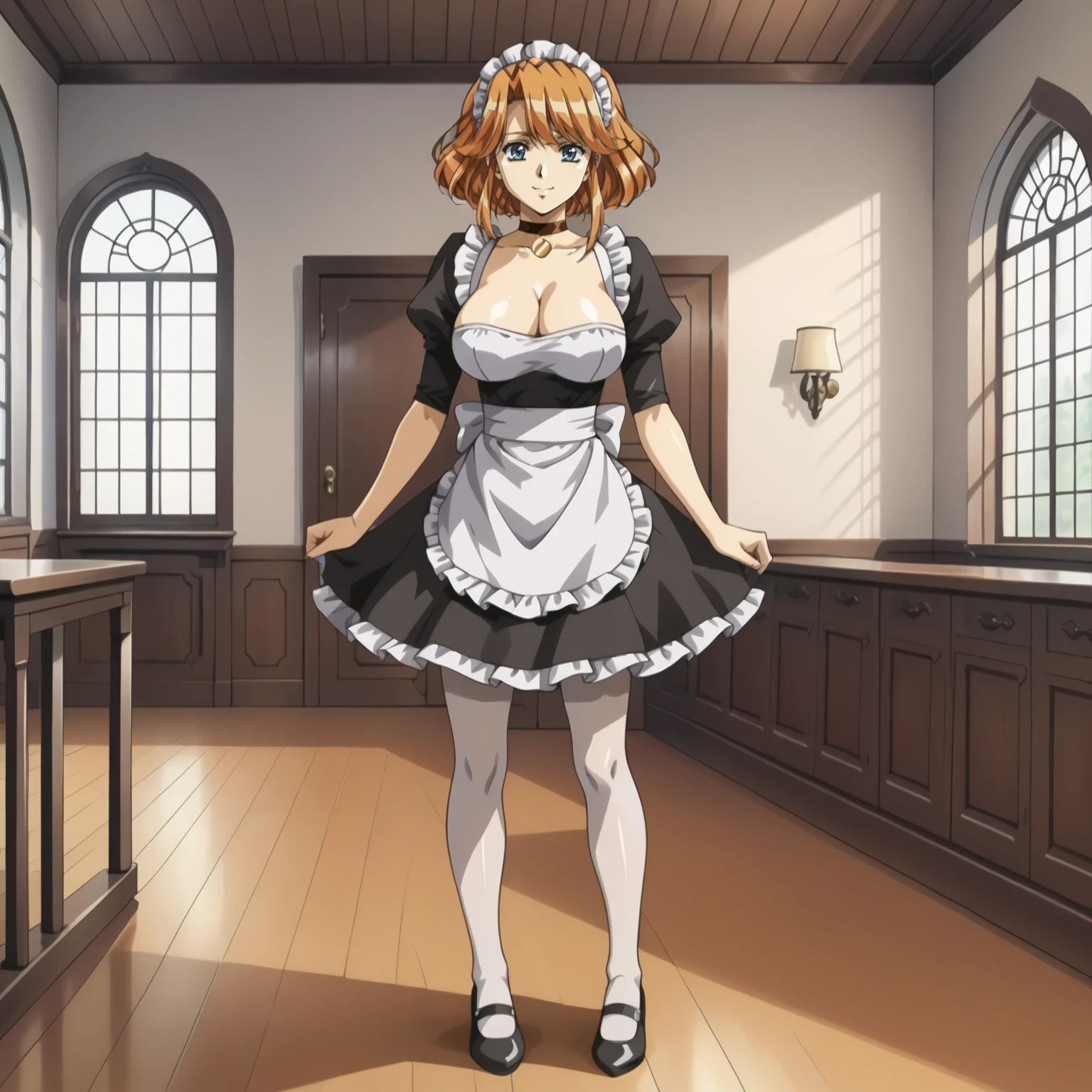 maid headdress, choker, maid, white_pantyhose,