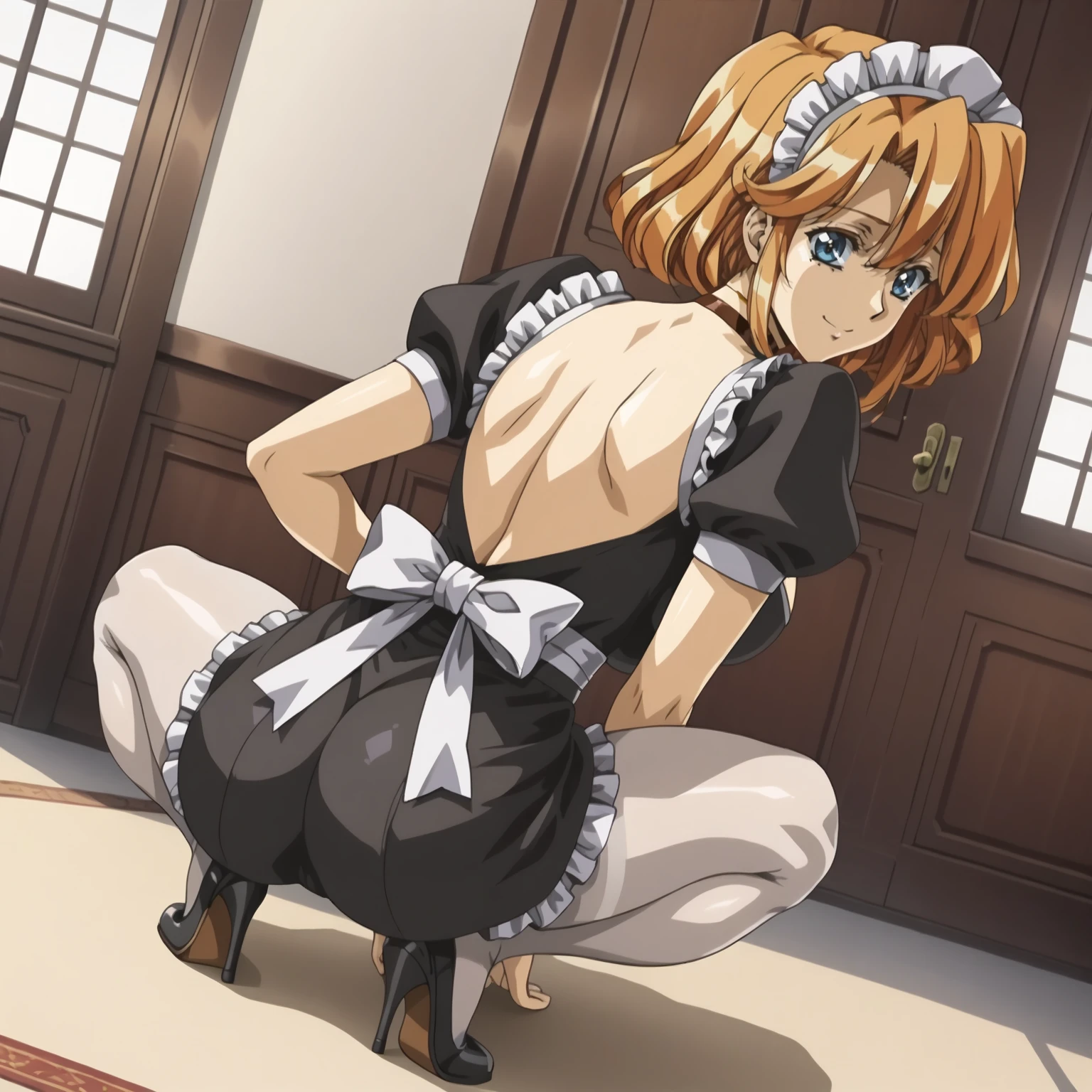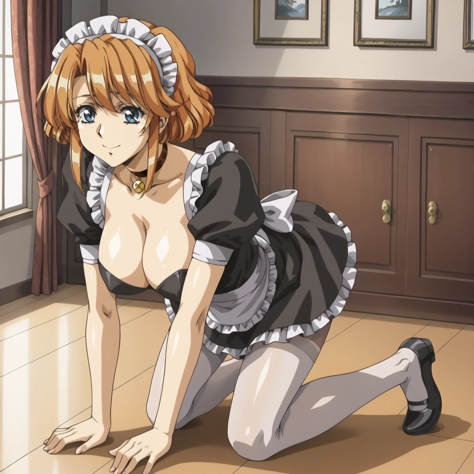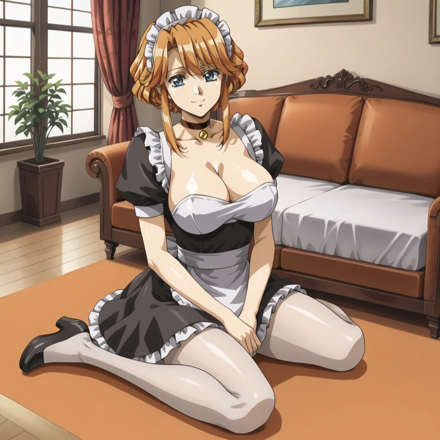 maid headdress, choker, maid, white_pantyhose,