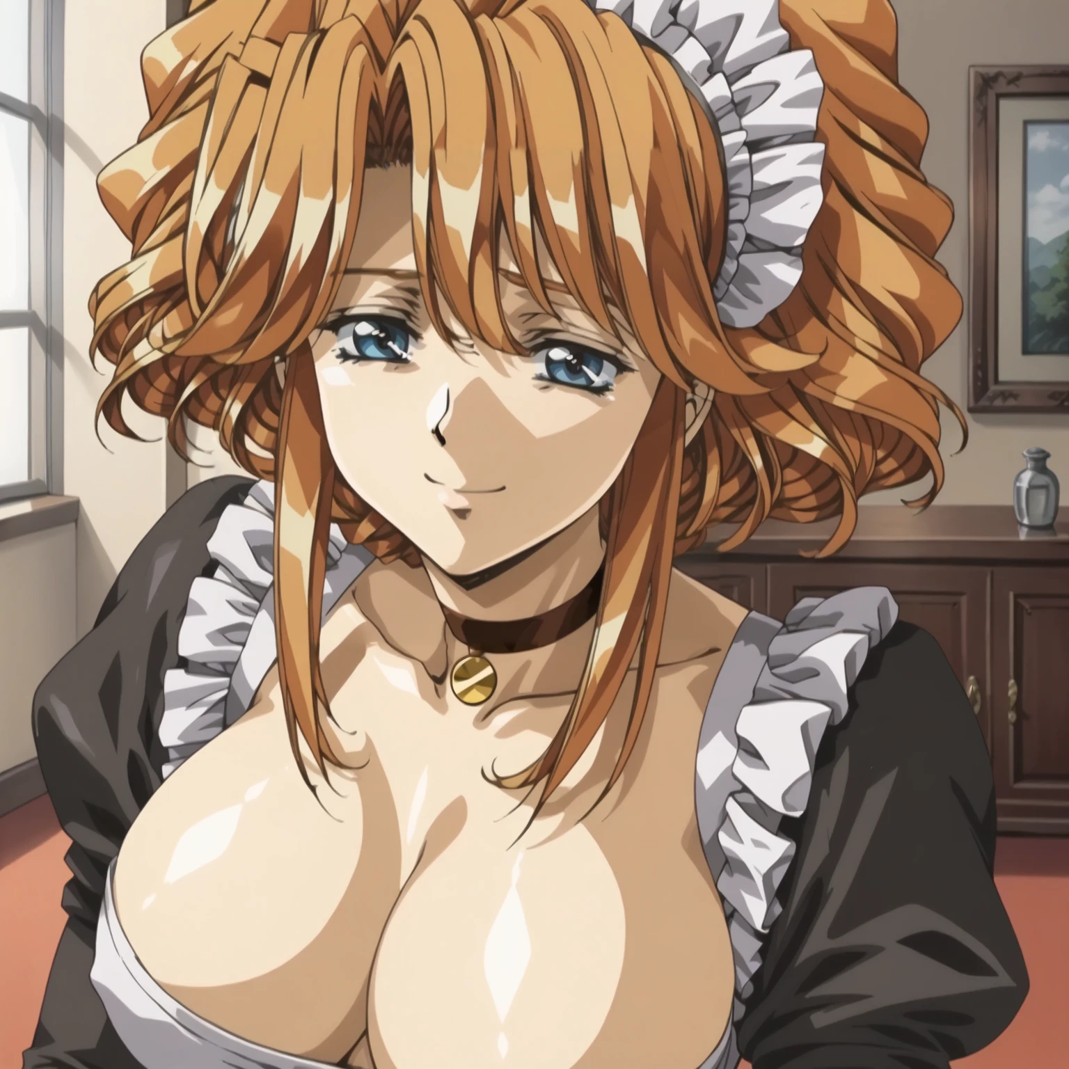 Aine,1girl,orange hair,middle hair,sidelocks,blue eyes, large breasts,