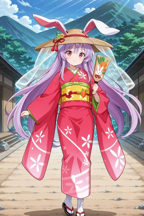 reisen udongein inaba, 1girl, solo, pink eyes, purple hair, long hair, rabbit ears, rabit tails,