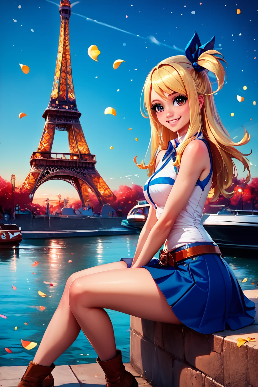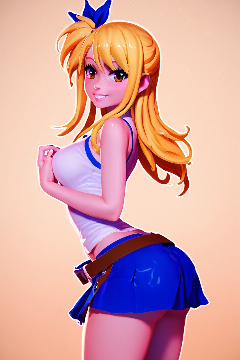 aaLucy, hair ribbon, side ponytail, blonde hair, long hair, large breasts,