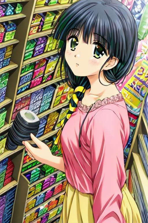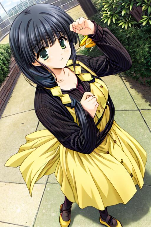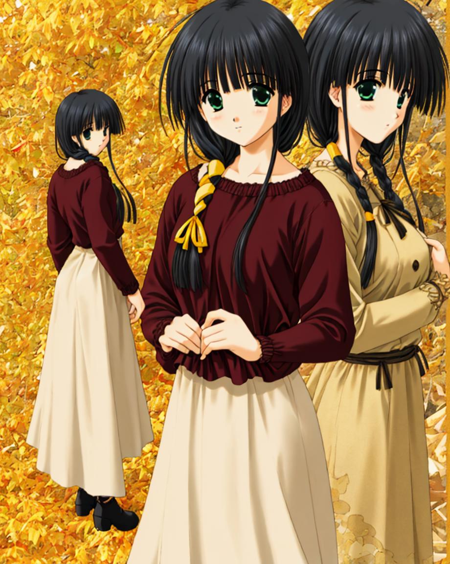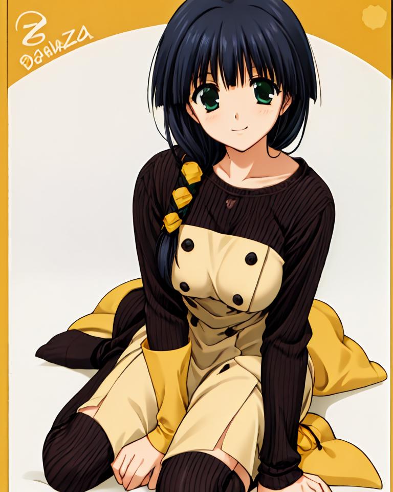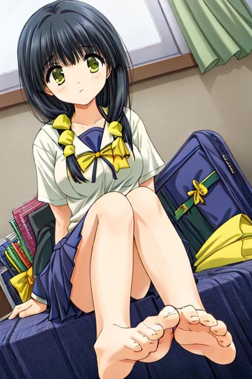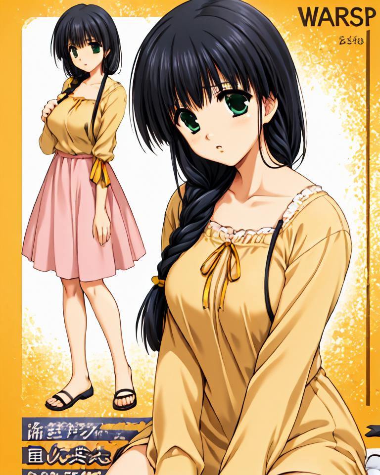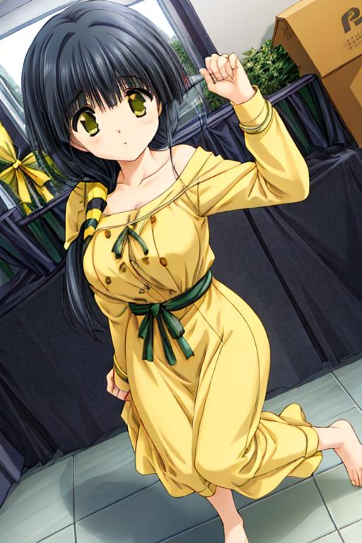 aya_hasebe,comic_party,long_hair,hair over shoulder,large_breast,green_eye,bangs, single braid,yellow ribbon, hair ribbon,