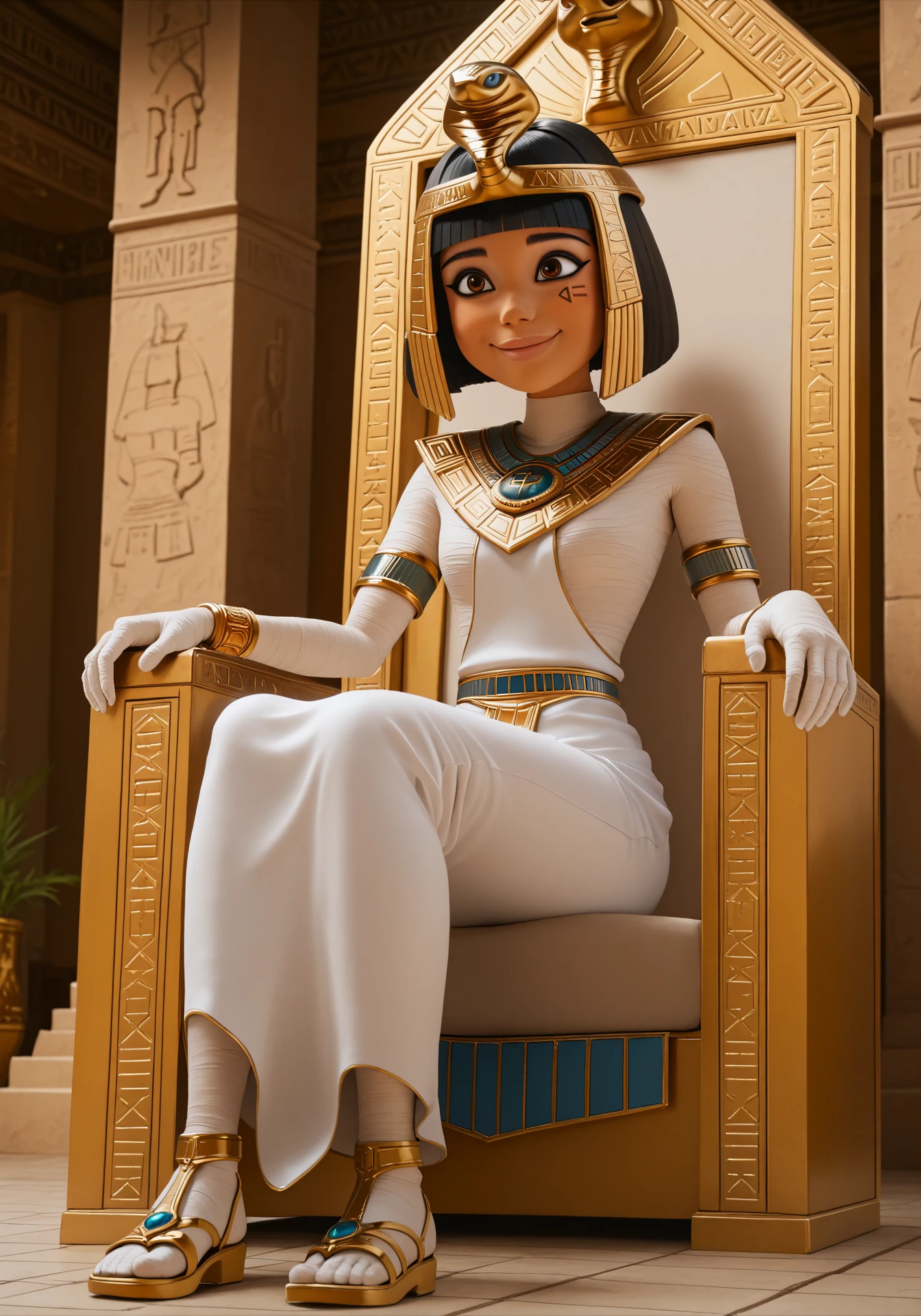 egyptian clothes, usekh collar, armlet, bandages, bracelet, white dress, sandals