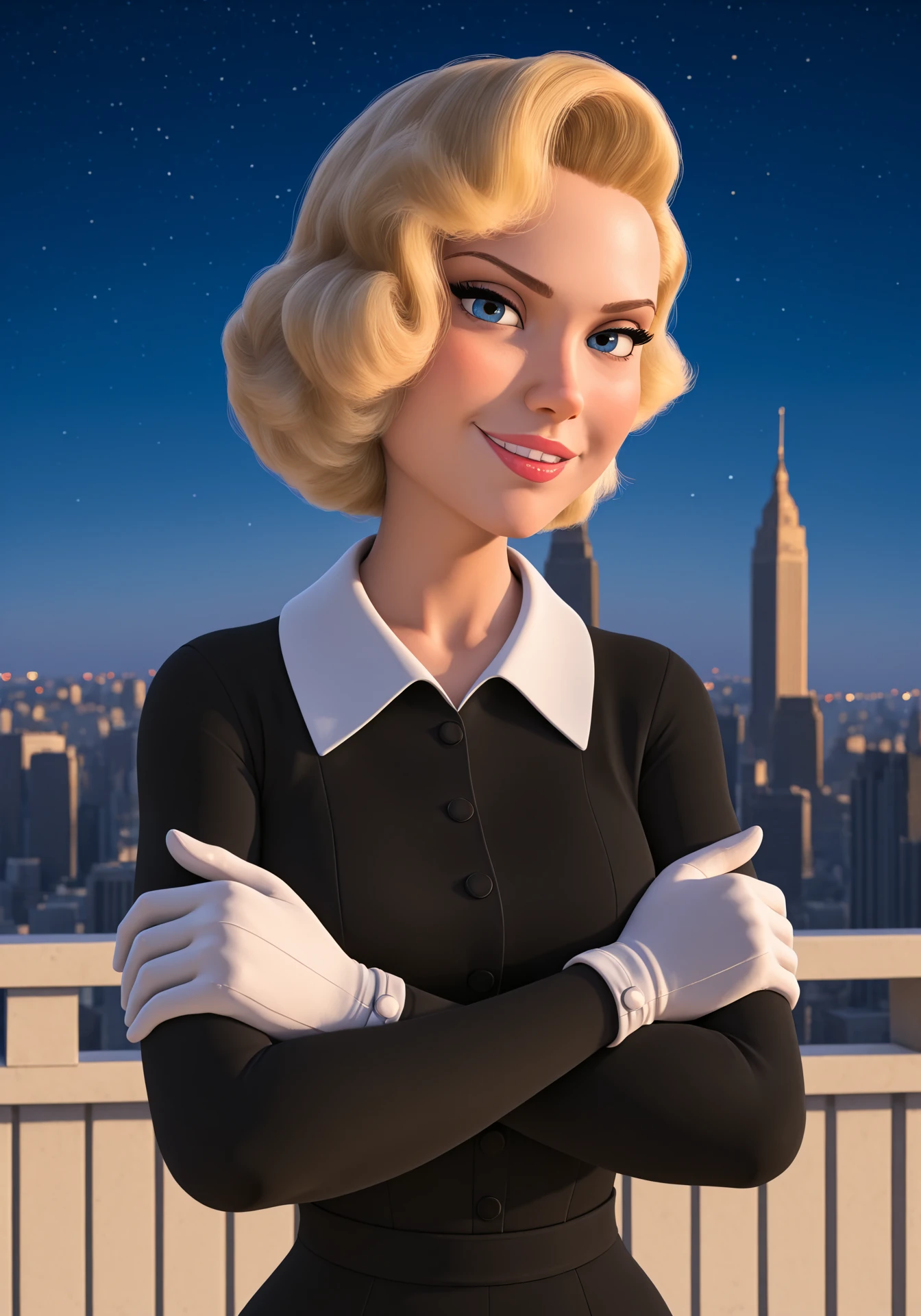 white gloves, black skirt, white shirt, collared shirt, orange jacket