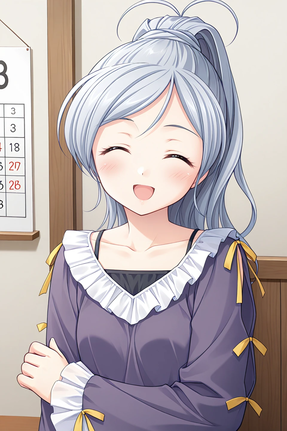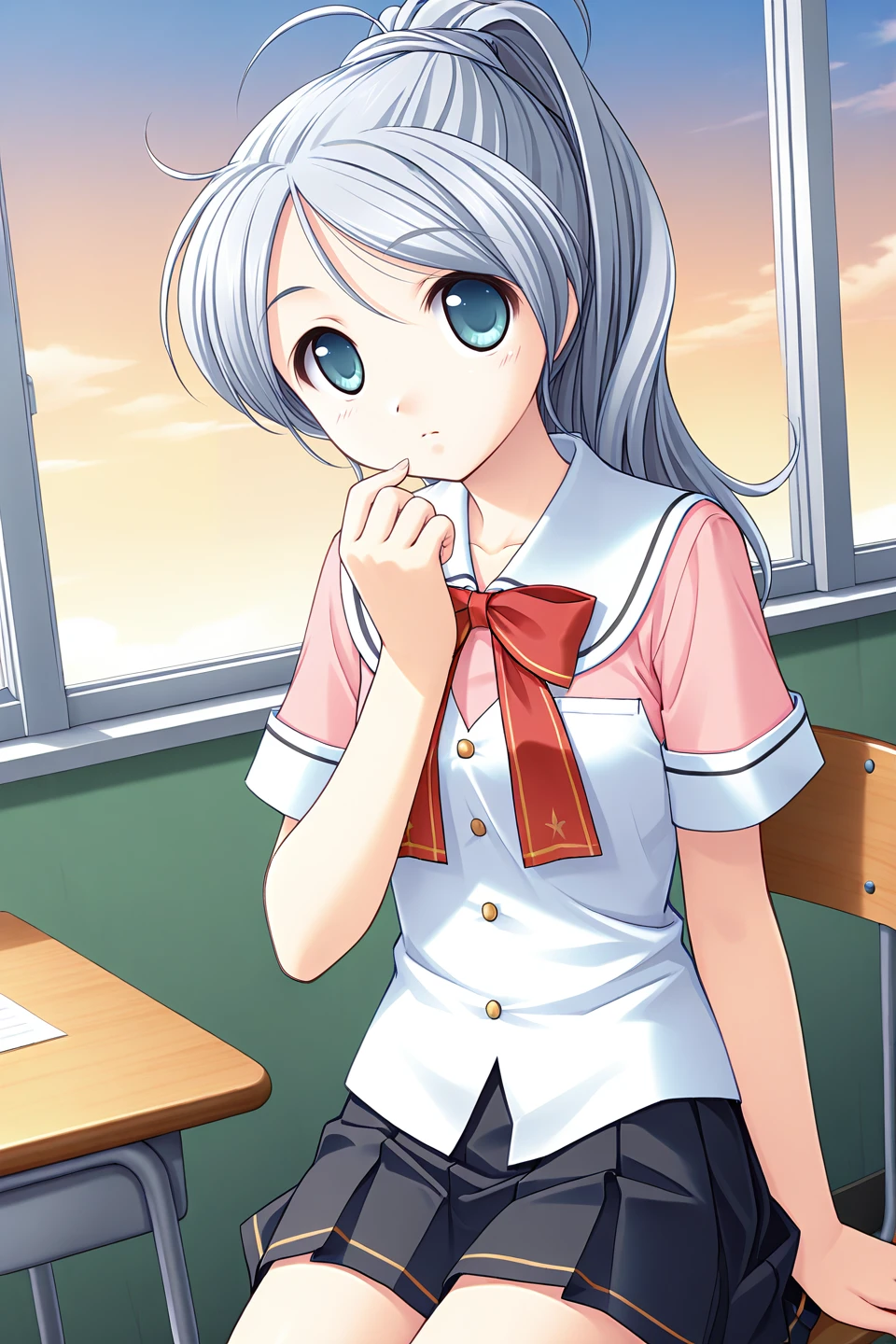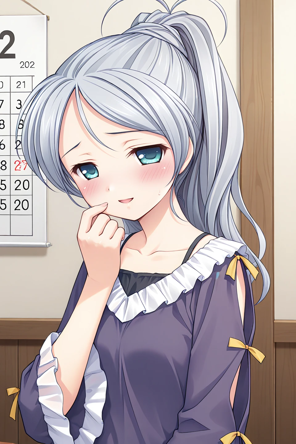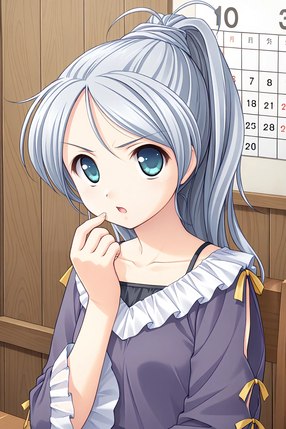 kajiura saki,aqua eyes,grey hair,parted bangs,