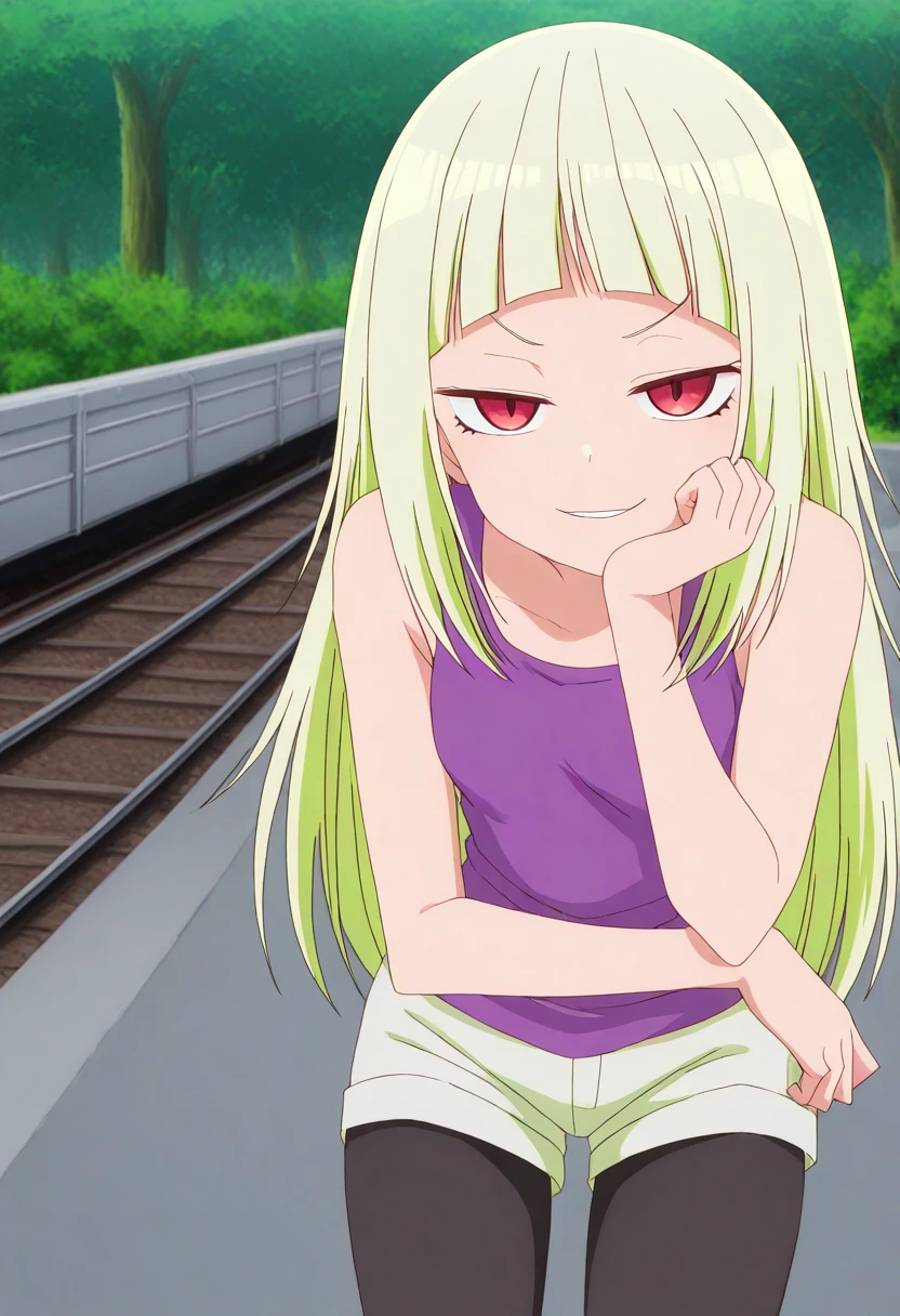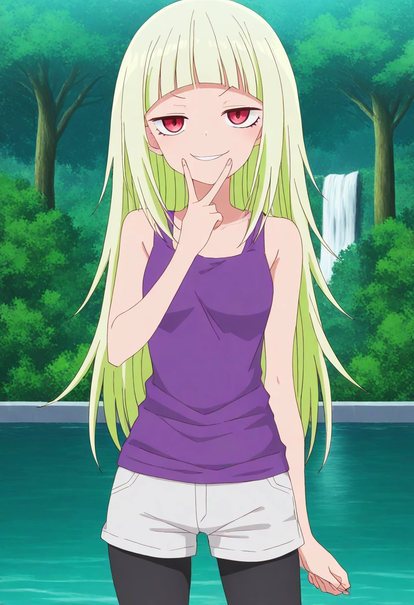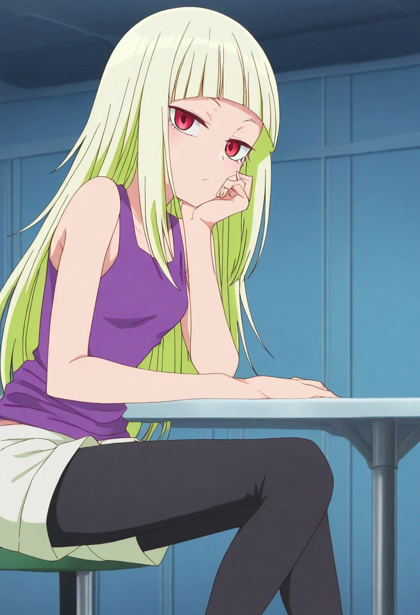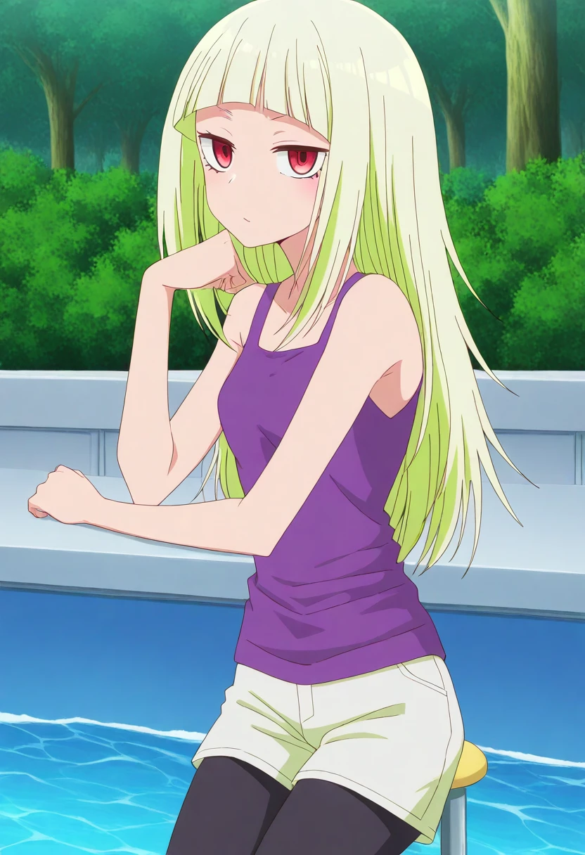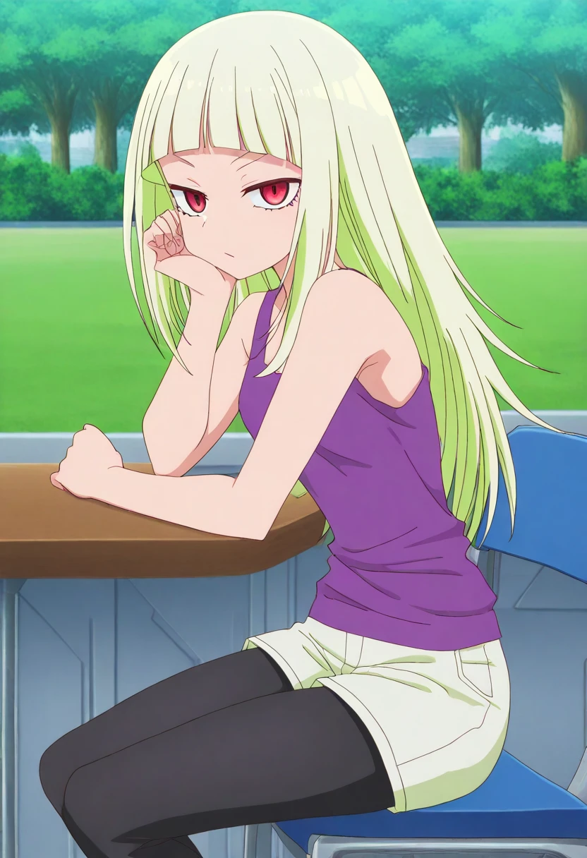 hizumi nanba, long hair, blonde hair, red eyes, blunt bangs, small breasts, anime screencap