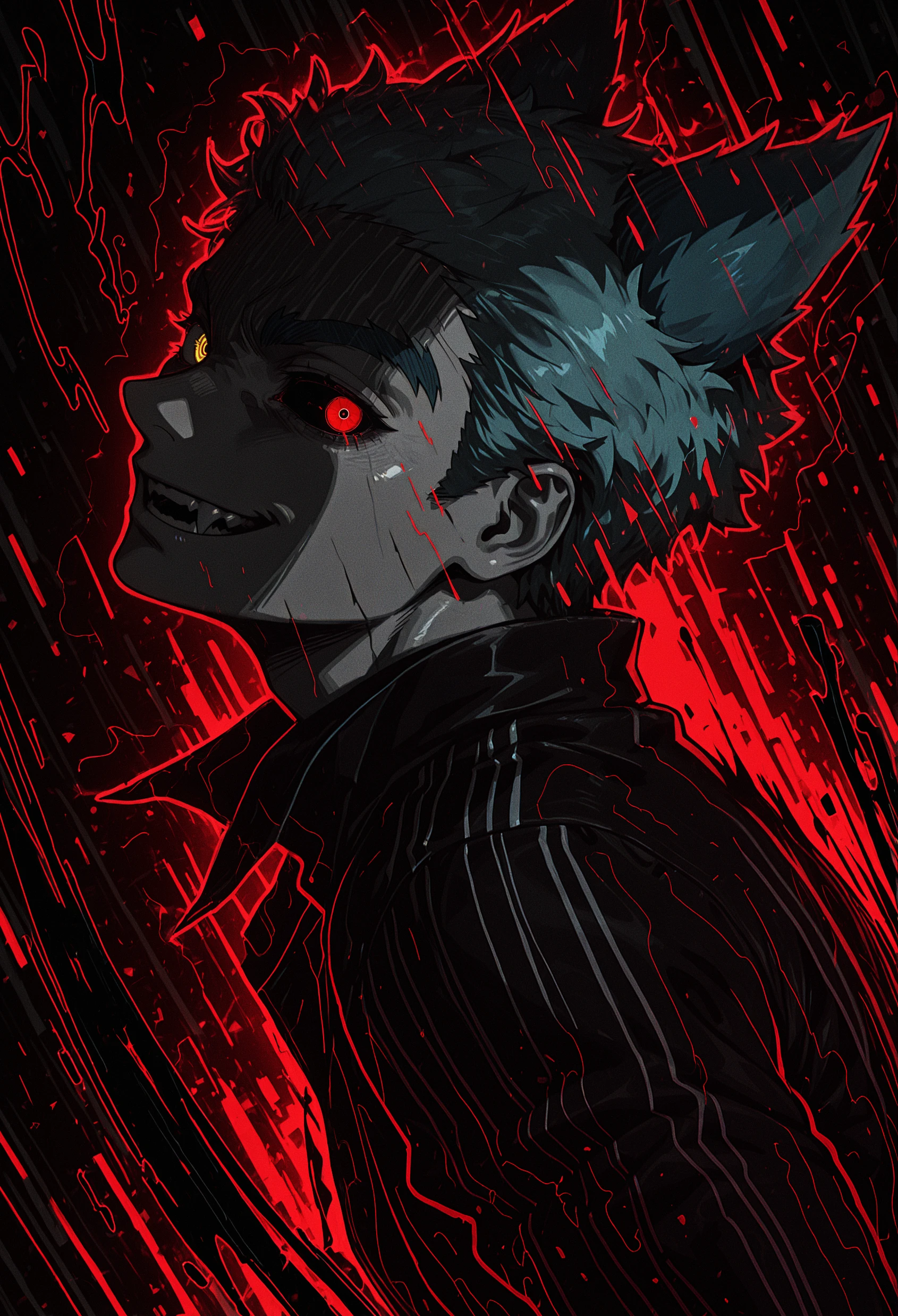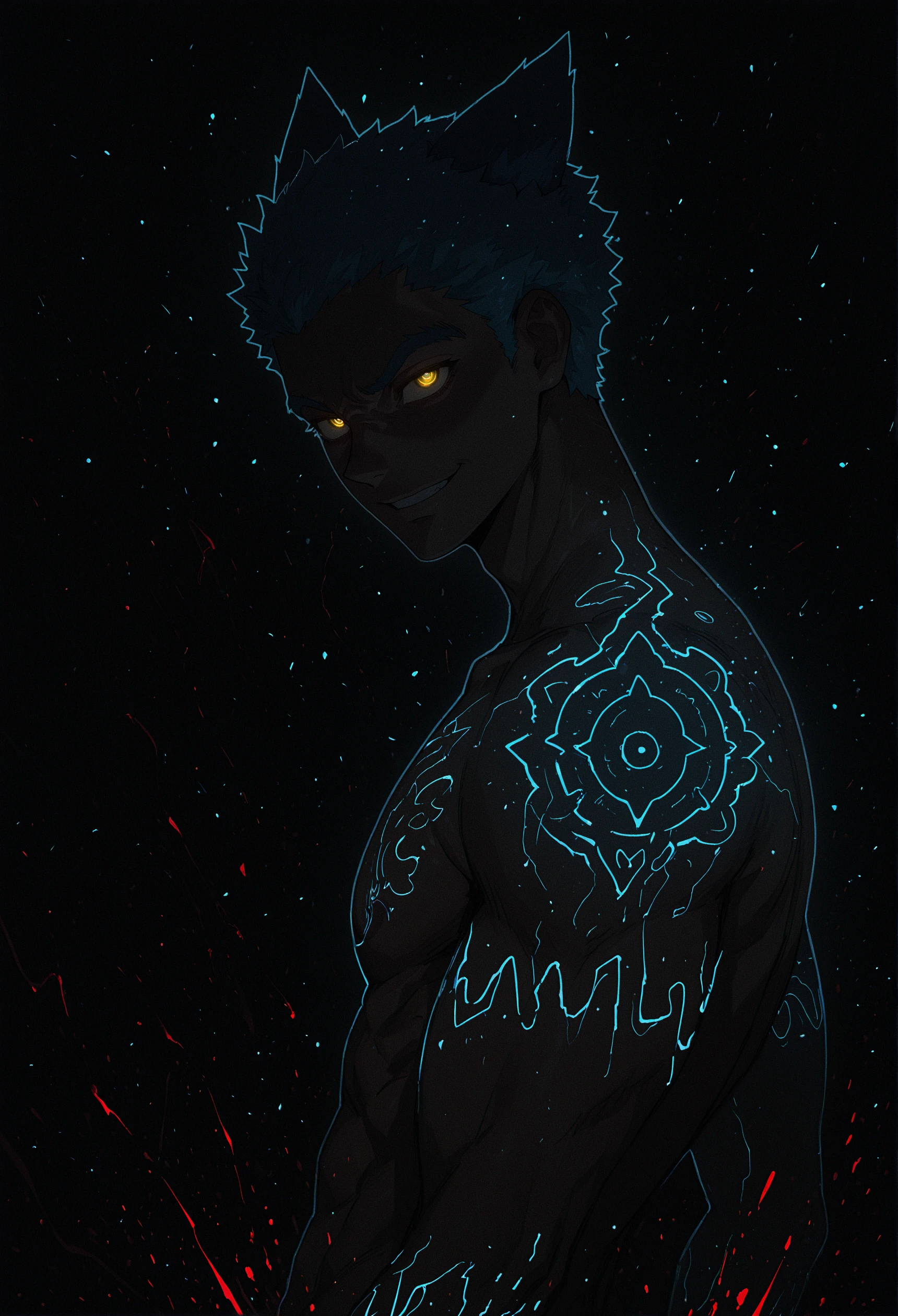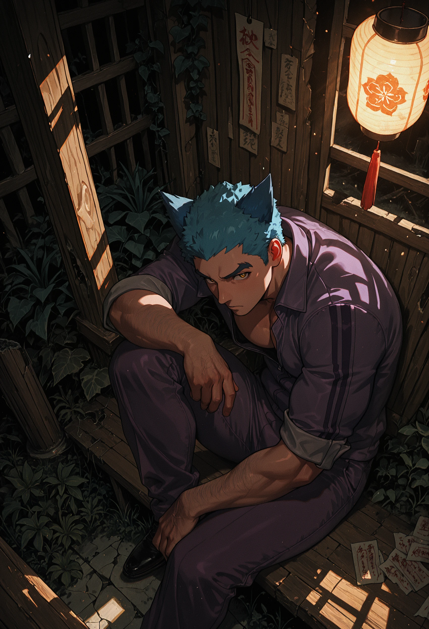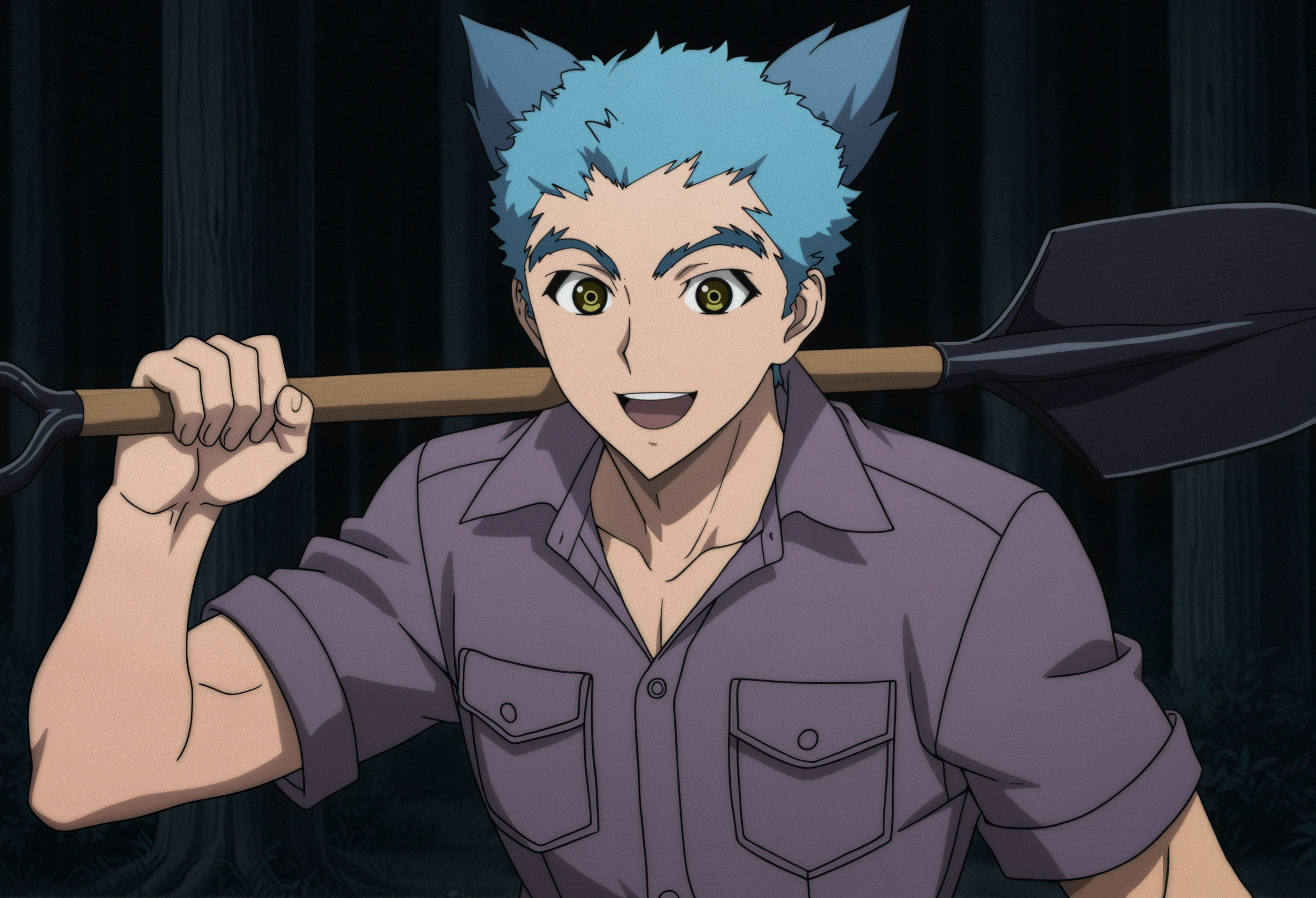 tatsumi \(shiki\), hair ears, blue hair, yellow eyes,