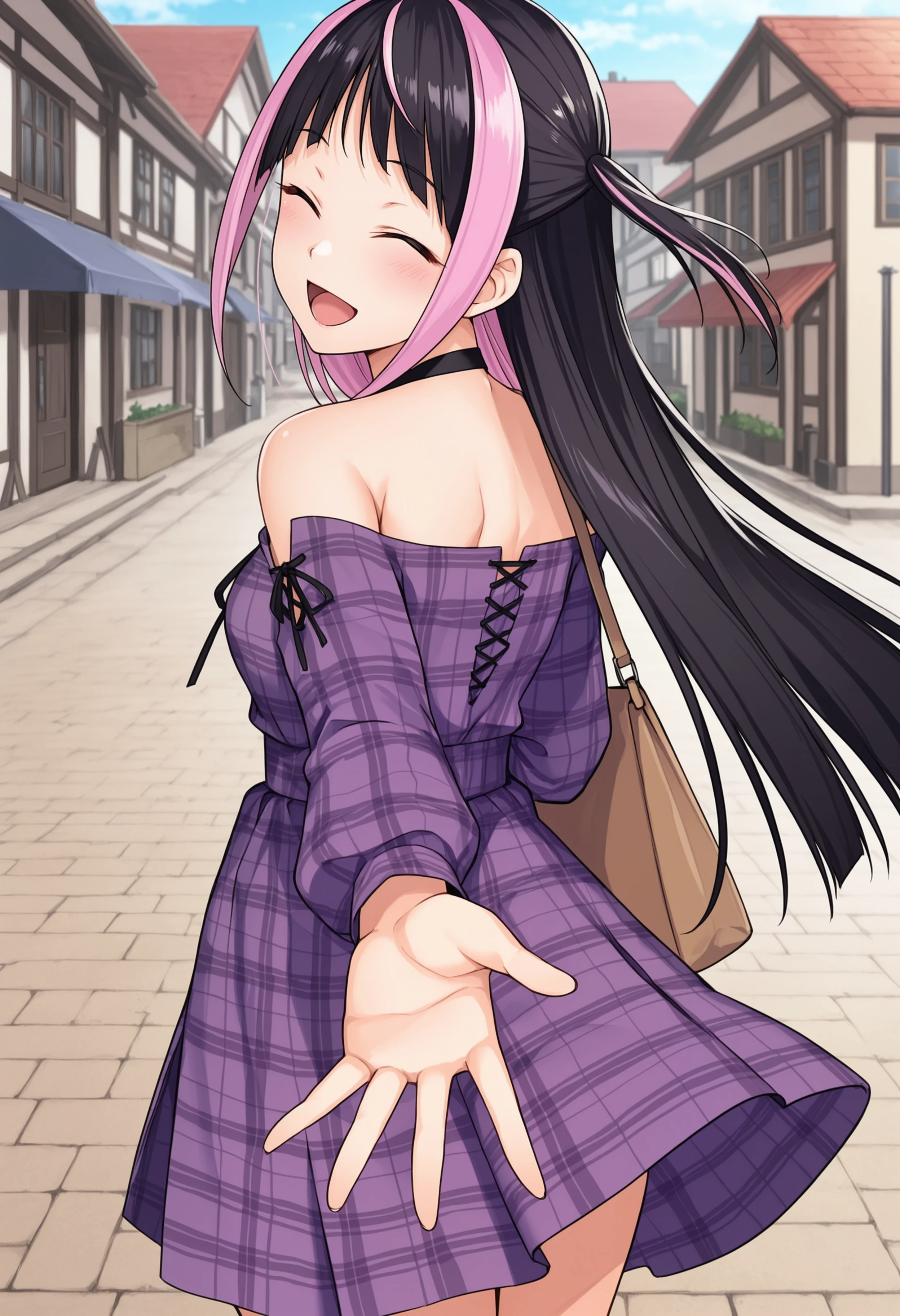 plaid dress, bare shoulders,