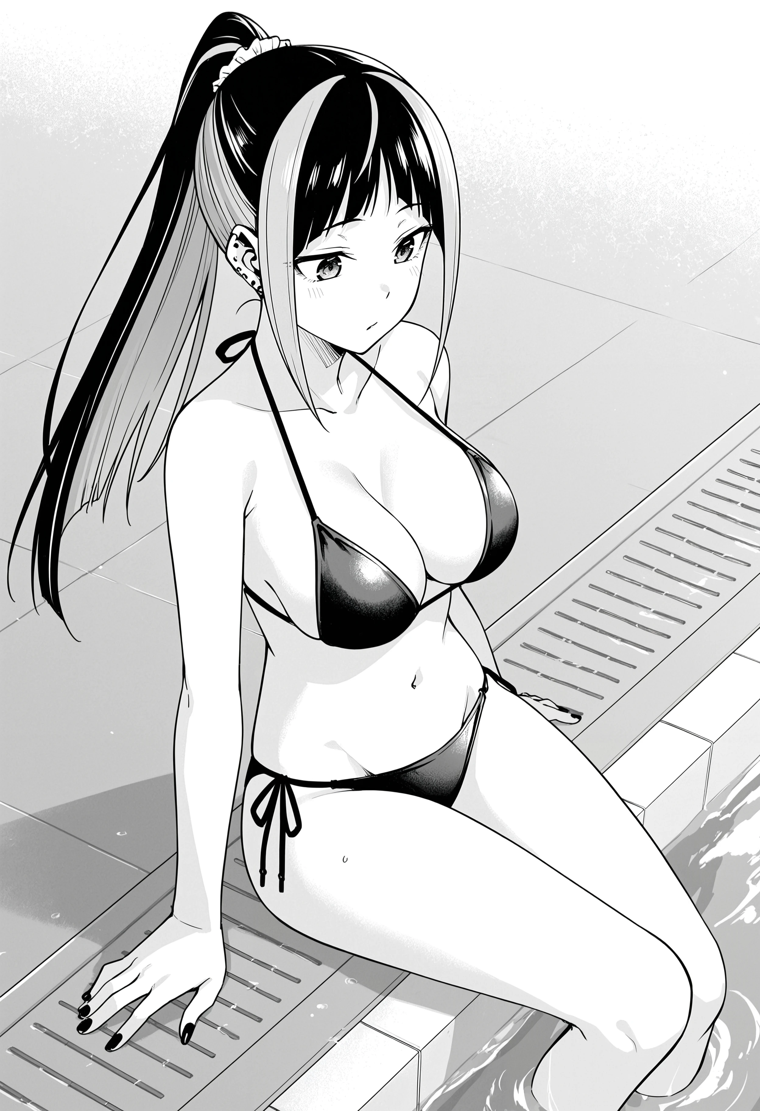 hnytrp_hyouka, black nail polish, earring, ear piercing,