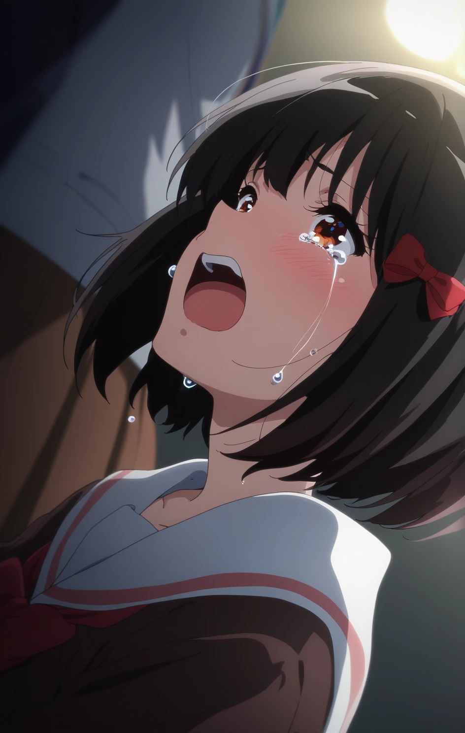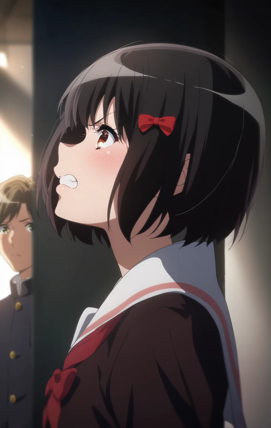 Kitauji High School uniform, school uniform, hair bow, brown shirt, sailor collar, red bow, white sailor collar, shirt, serafuku,