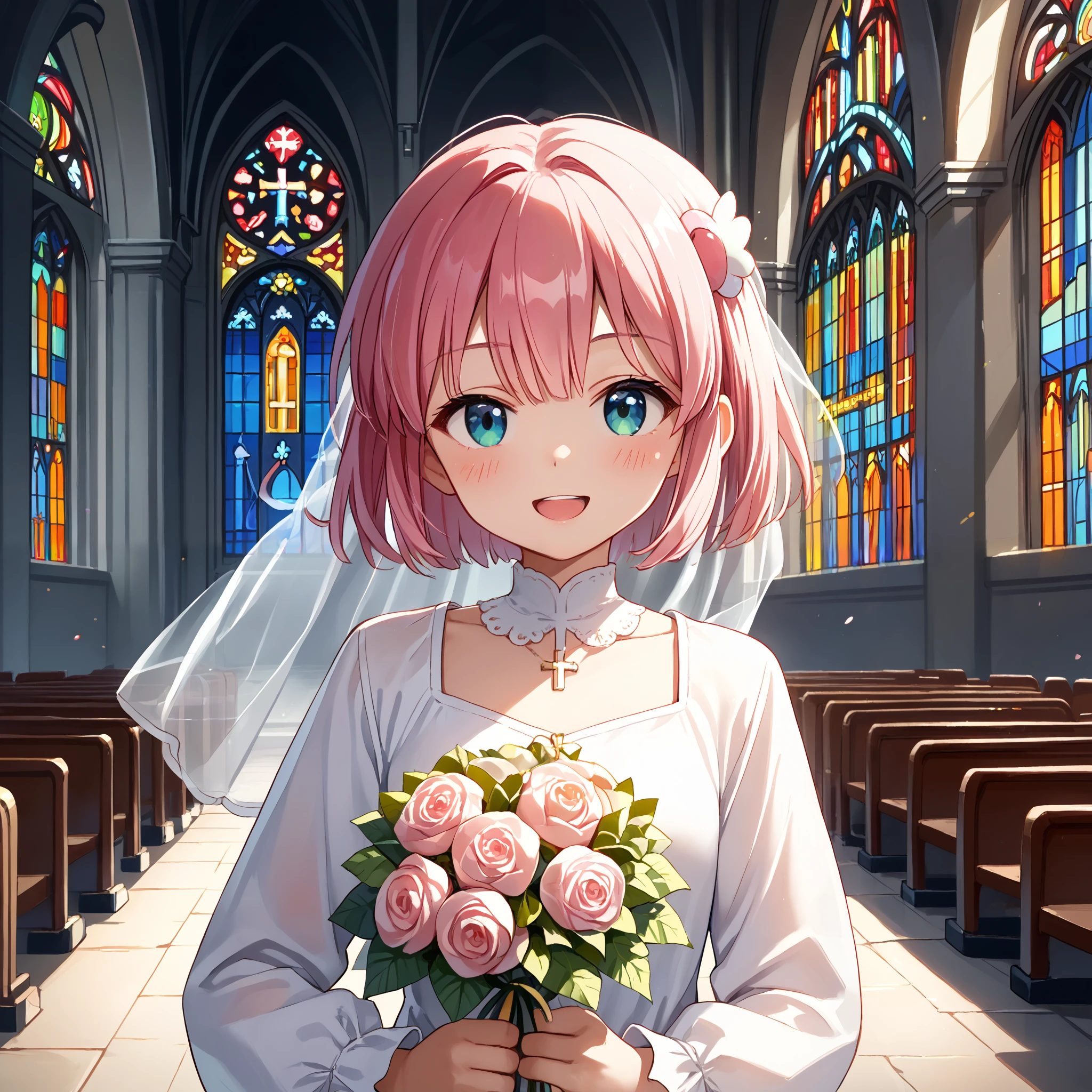 chiyoda momo, blue eyes, pink hair, short hair, momo magic, magical girl, short twintails, wing hair ornament, pink bowtie, pink choker, bare shoulders, detached sleeves, pink skirt, layered skirt, pink sleeves, frilled sleeves, frilled skirt, lace-trimmed choker, frilled thighhighs, white thighhighs,