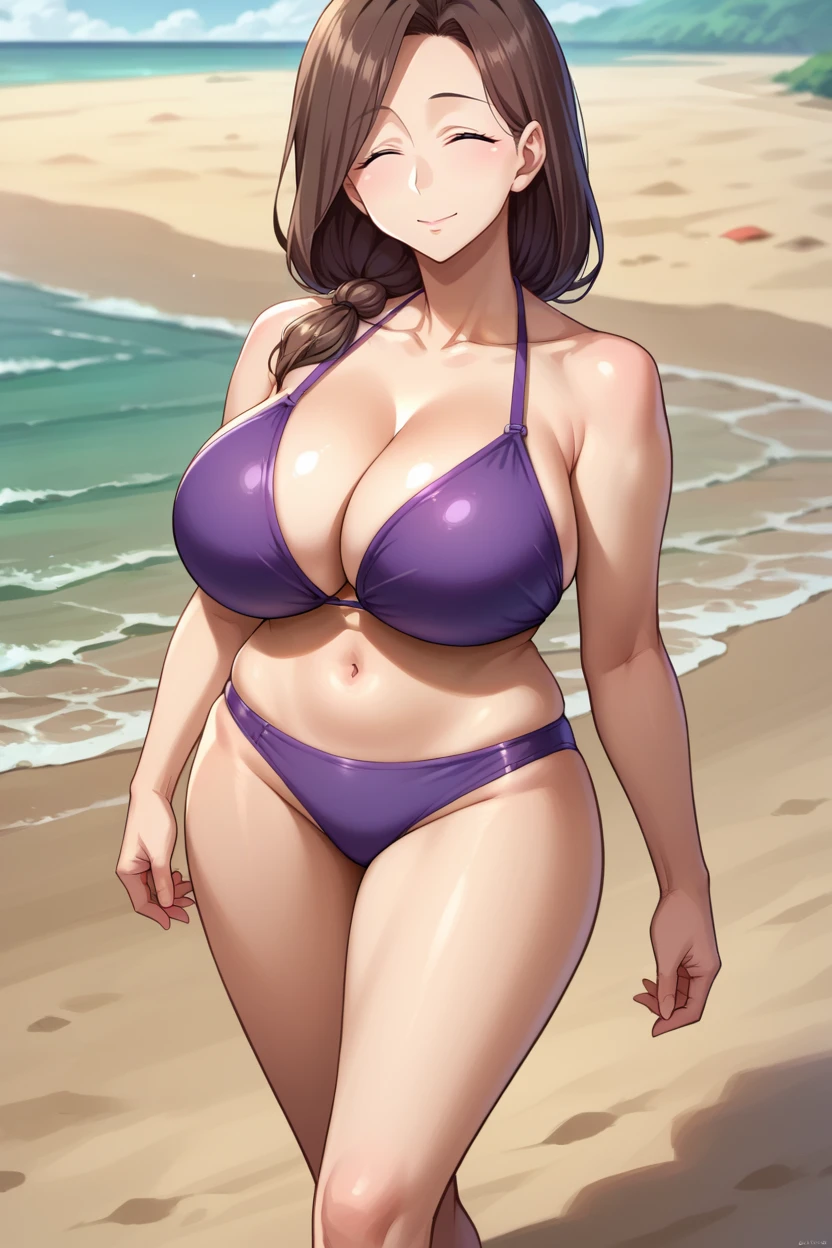 Trigger word is "aimom" and "brown hair, hair over shoulder, mature female" is required.